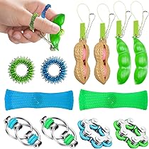 Für alle, die etwas für die Finger brauchen! Dieses 22-teilige Fidget Toys Set ist perfekt für Kinder und Erwachsene mit ADHS, Konzentrationsschwierigkeiten oder einfach nur zum Stressabbau. Enthalten sind bunte Flechtnetze, Federn in Gold, Silber und Pastelltönen, Ketten in Blau und Rot sowie niedliche Tierformen. Die verschiedenen Texturen und Formen fördern die sensorische Wahrnehmung und helfen bei der Beruhigung. Super handlich für die Schule, das Büro oder unterwegs - passt in jede Tasche oder Schulranzen. Perfekt für stressige Momente, Wartezeiten oder wenn die Hände einfach beschäftigt werden wollen. Fördert die Feinmotorik und bietet eine gesunde Alternative zum Nägelkauen oder anderen nervösen Angewohnheiten. Einfach unauffällig nutzbar und sofort wirksam. Ein tolles Geschenk für jeden, der etwas Entspannung im Alltag gebrauchen kann. Probiert es aus und spürt den Unterschied!