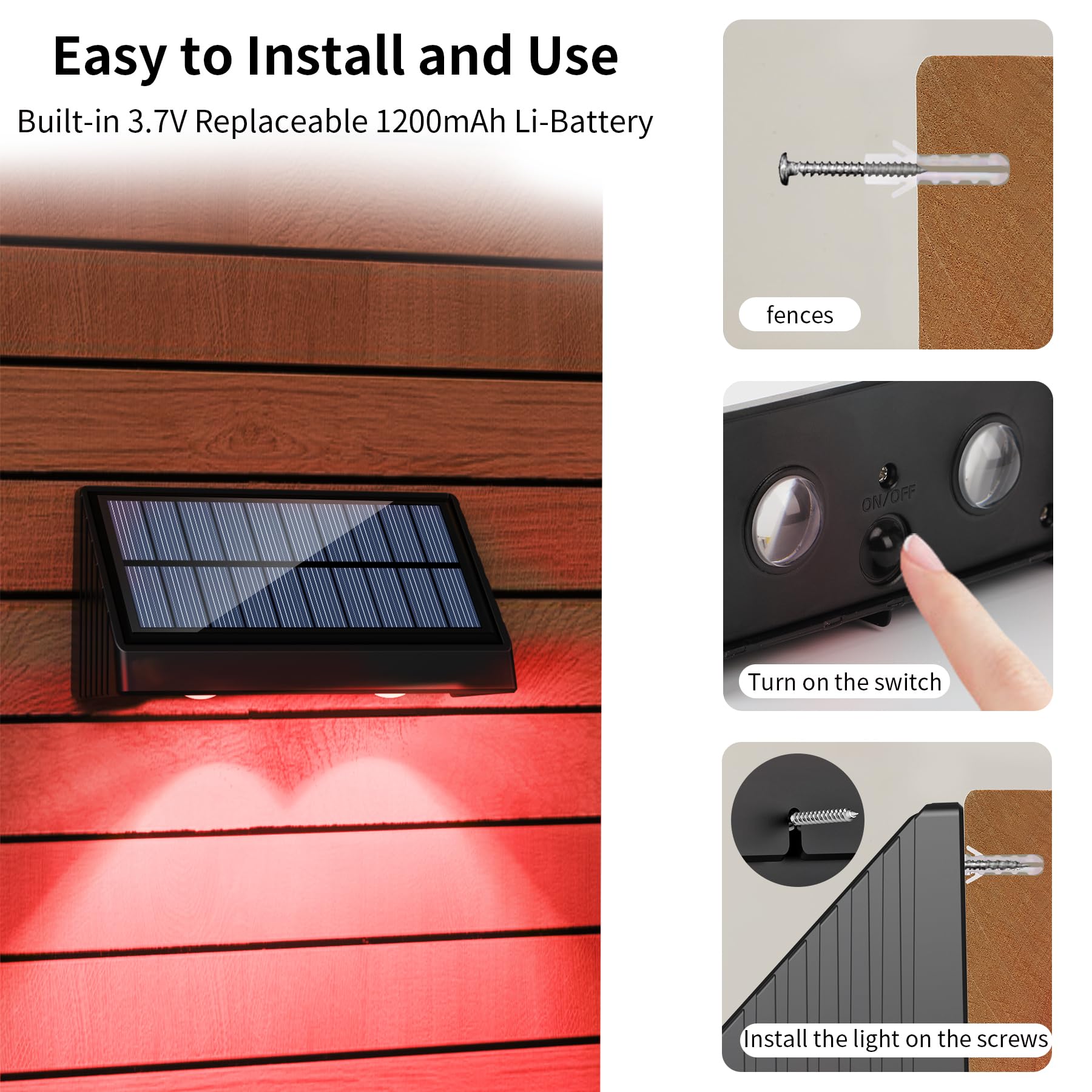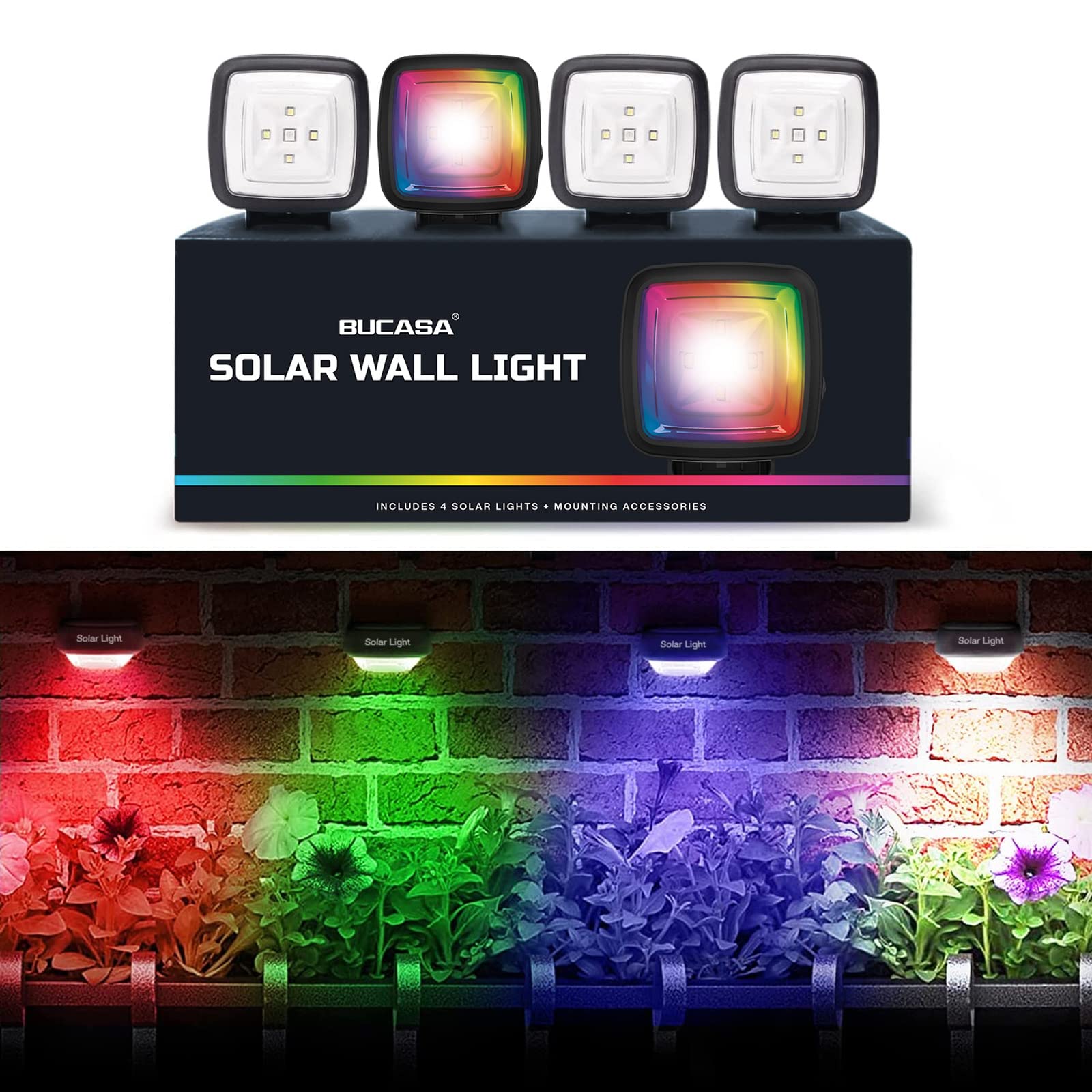• AGPTEK Solarzaunleuchten 4er Set - Warmweiß & RGB Mit 10 Beleuchtungsmodi