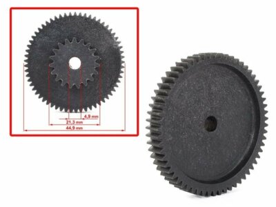 Technische Daten genau unter die Lupe genommen: Außendurchmesser 1: 21,2 mm mit 19 Zähnen, Außendurchmesser 2: 44,6 mm mit 61 Zähnen, und der Innendurchmesser beträgt 4,5 mm.