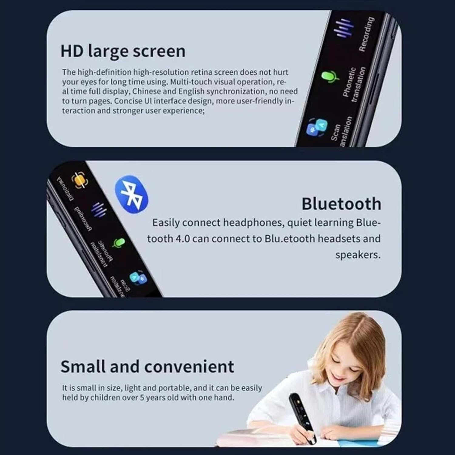 Alter, dieser PenGPT Stift ist ja mal der absolute Knaller! Der hat ne 3,5 Zoll HD Touchscreen und kann wirklich ALLES. Du scannst einfach gedruckten oder handgeschriebenen Text - und zack! - kriegst du sofort AI-Erklärungen und Schritt-für-Schritt-Lösungen. Das geilste? Das geht sogar OFFLINE! Kein Internet nötig. Und Übersetzungen? 150+ Sprachen sofort auf dem Display. Perfekt für Reisen, Studium oder Arbeit. Der Stift nimmt auch deine Stimme auf und syncet alles per WLAN auf deine Geräte. Super für Vorlesungen oder Meetings. Frag den AI Assistant einfach alles: Emails schreiben, Ideen entwickeln, Texte verbessern - der macht's. Lädt 2 Stunden und hält dann 8 Stunden durch. Mit 250g liegt der gut in der Hand und die Verarbeitung aus ABS-Kunststoff ist richtig wertig. Also wenn du was suchst, das wirklich smart ist und dein Leben einfacher macht - hier ist es!