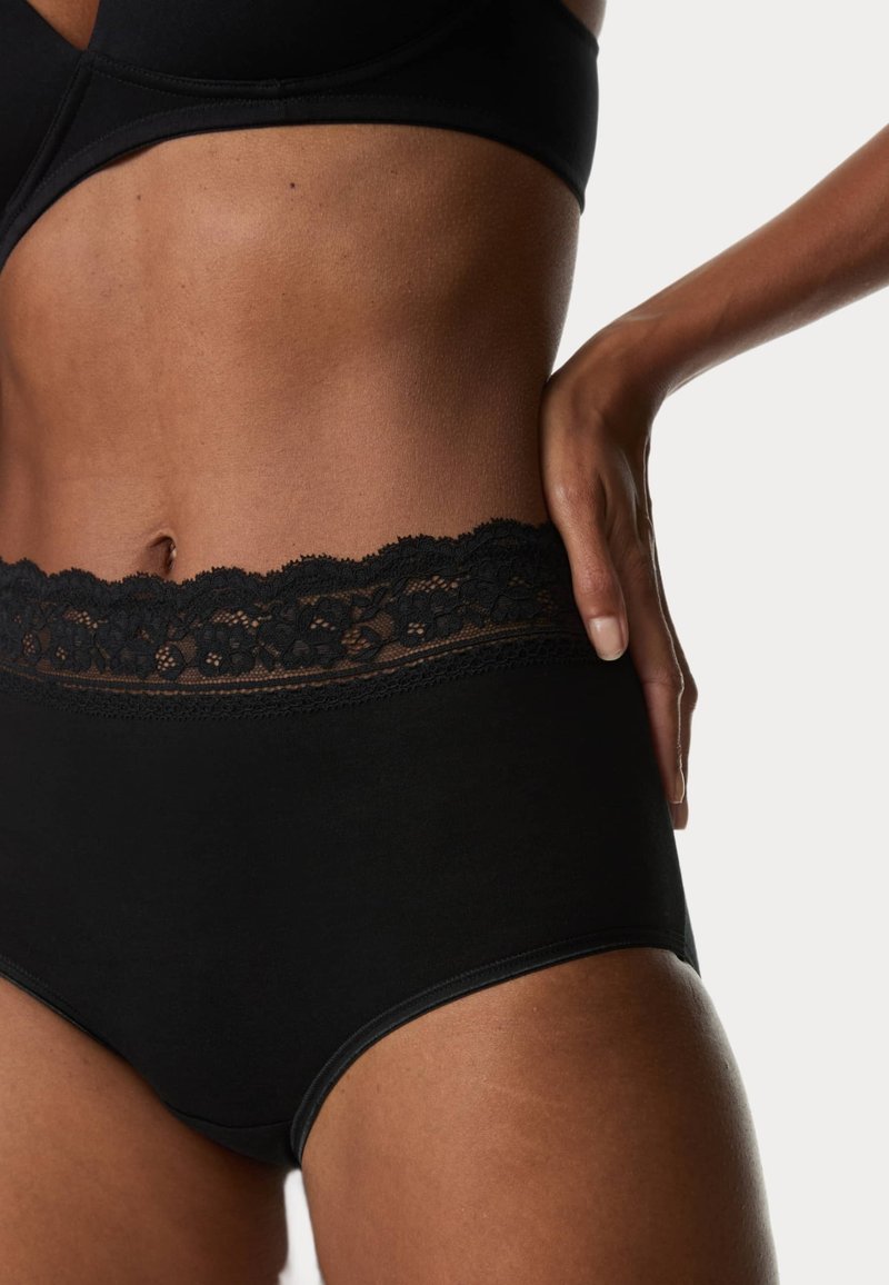 • ALL OF SHE 5er Pack Damen-Slips - Schwarz Baumwolle Spitze (Low-Rise)