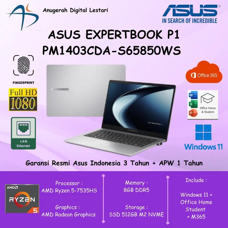 Das perfekte Business-Notebook für anspruchsvolle Aufgaben! Der ASUS ExpertBook PM1 kombinizeiert Leistung und Mobilität in einem schlanken Design in Misty Grey. Angetrieben von einem AMD Ryzen 5 7535HS Hexa Core Prozessor mit bis zu 4,55 GHz Turbo Boost und der integrierten AMD Radeon 660M Grafikeinheit meistert es auch anspruchsvolle Anwendungen mit Leichtigkeit. Mit 32GB DDR5 RAM und einer schnellen 1TB SSD hast du genug Power und Speicherplatz für alle deine Projekte. Das 15,6 Zoll Full-HD IPS Display liefert gestochen scharfe Bilder, während die FHD Webcam mit physischer Abdeckung deine Privatsphäre schützt. Besonders praktisch: Die Copilot Taste gibt dir direkten Zugang zu KI-Funktionen. Mit WiFi 6E, Bluetooth 5.4, Fingerprint-Sensor und einem deutschen Tastaturlayout mit Ziffernblock ist dieses Notebook optimal für den professionellen Einsatz ausgestattet. Der Akku hält bis zu 8 Stunden - perfekt für unterwegs. Bei nur 1,68kg Gewicht ist es dabei erstaunlich leicht und tragbar. Windows 11 Pro ist bereits vorinstalliert. Ob fürs Homeoffice, unterwegs oder im Meeting - dieses Notebook ist dein zuverlässiger Partner für alle Business-Aufgaben!