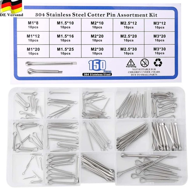 Das ultimative Splinte-Set für jede Werkstatt! 330 Sicherungssplinte in 7 verschiedenen Größen von M1 bis M5: 100x M1x16mm, 100x M1,5x20mm, 60x M2x25mm, 30x M2,5x30mm, 20x M3x35mm, 10x M4x40mm, 10x M5x50mm. Aus hochwertigem 304 Edelstahl - rostfrei, korrosionsbeständig und extrem langlebig. Verhindern das Lösen von Muttern und Bolzen durch Vibrationen oder Lastwechsel. Einfache Installation: Splint ins Loch stecken, Schenkel mit Zange gegeneinander biegen und spreizen - fertig! Perfekt für Auto, Mechanik, Schiffsreparatur, Baumaschinen, Industrieventile und alle rotierenden Maschinen. Ein Must-Have für jeden Hobby-Schrauber und Profi!