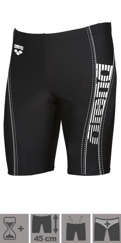 Die perfekte Badehose für alle, die gerne schwimmen! Die ARENA Jammer Straightline ist mit 45cm Seitenlänge etwas länger geschnitten und bietet damit optimalen Komfort beim Training. Aus 82% Polyester und 18% Elastan trocknet sie super schnell und hat integrierten UV-Schutz UPF50+ - ideal für Outdoor-Pools. Der innenliegende Kordelzug sorgt für perfekten Sitz und die teilweise abgefütterte Vorderseite gibt zusätzlichen Komfort. Ob du freizeitmäßig schwimmst oder regelmäßig trainierst - diese Hose sitzt wie angegossen und behindert nicht bei der Bewegung. Ein echter Allrounder für alle, die Wert auf Qualität und Funktionalität legen!