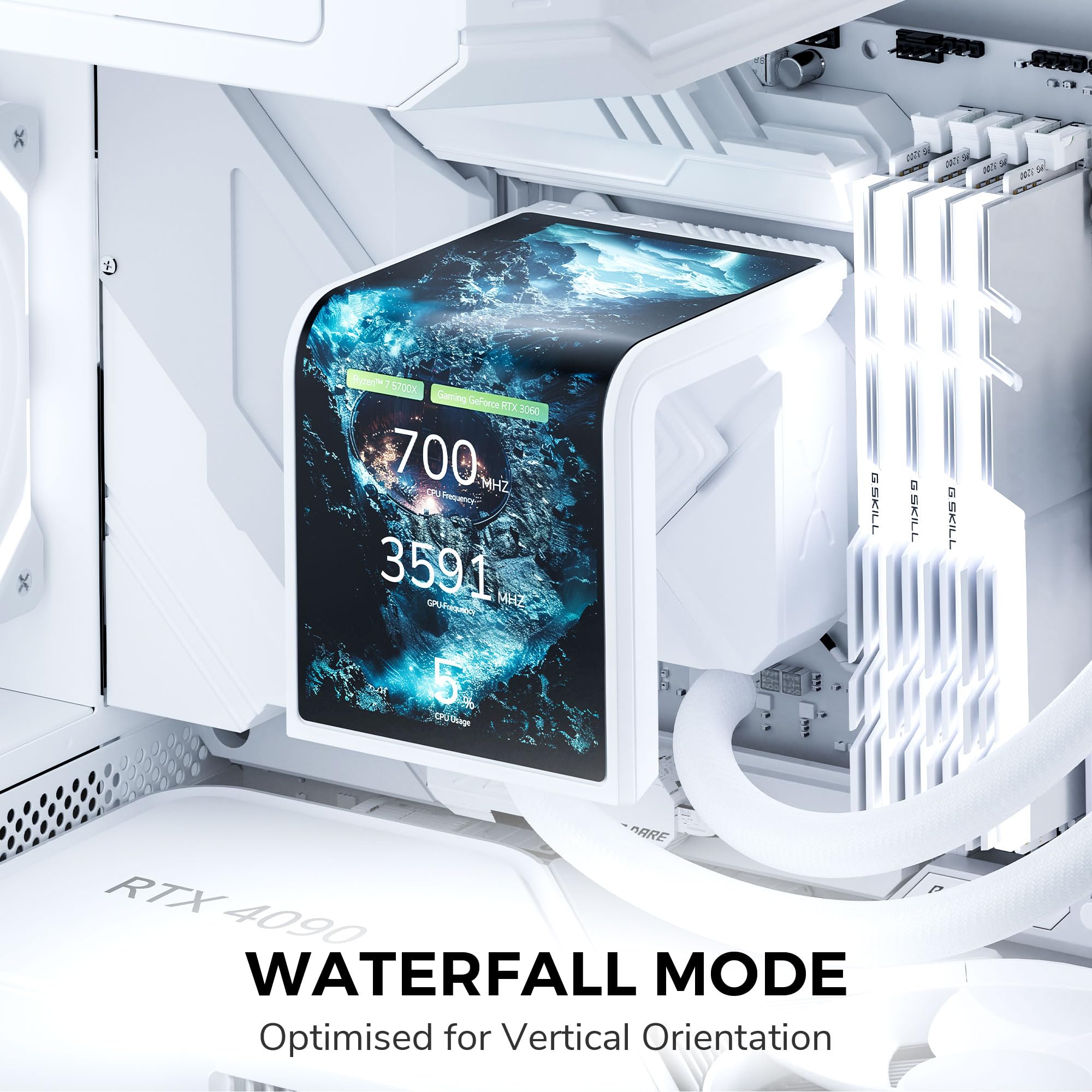 Das ist echter PC-Hardware-Luxus! Der TRYX Panorama ARGB 240 AIO Wasserkühler in strahlendem Weiß begeistert mit einem riesigen 6,5\ AMOLED Display in 2K Auflösung. Das gebogene L-Design erzeugt atemberaubende 3D-Effekte, die du aus jedem Winkel perfekt siehst. Mit der leistungsstarken Asetek 8. Gen Pumpe und 280W TDP kühlst du sogar die heißesten CPUs effizient runter. Die zwei 120mm ARGB Lüfter arbeiten flüsterleise unter 28dB. Per Software kannst du das Display komplett individualisieren - lade eigene Bilder, Videos oder GIFs hoch! Volle Kompatibilität mit allen aktuellen Sockeln (LGA 1700/AM5 etc.). Für Gamer und Enthusiasten, die das Besondere suchen. Ein echter Hingucker in jedem Gehäuse!