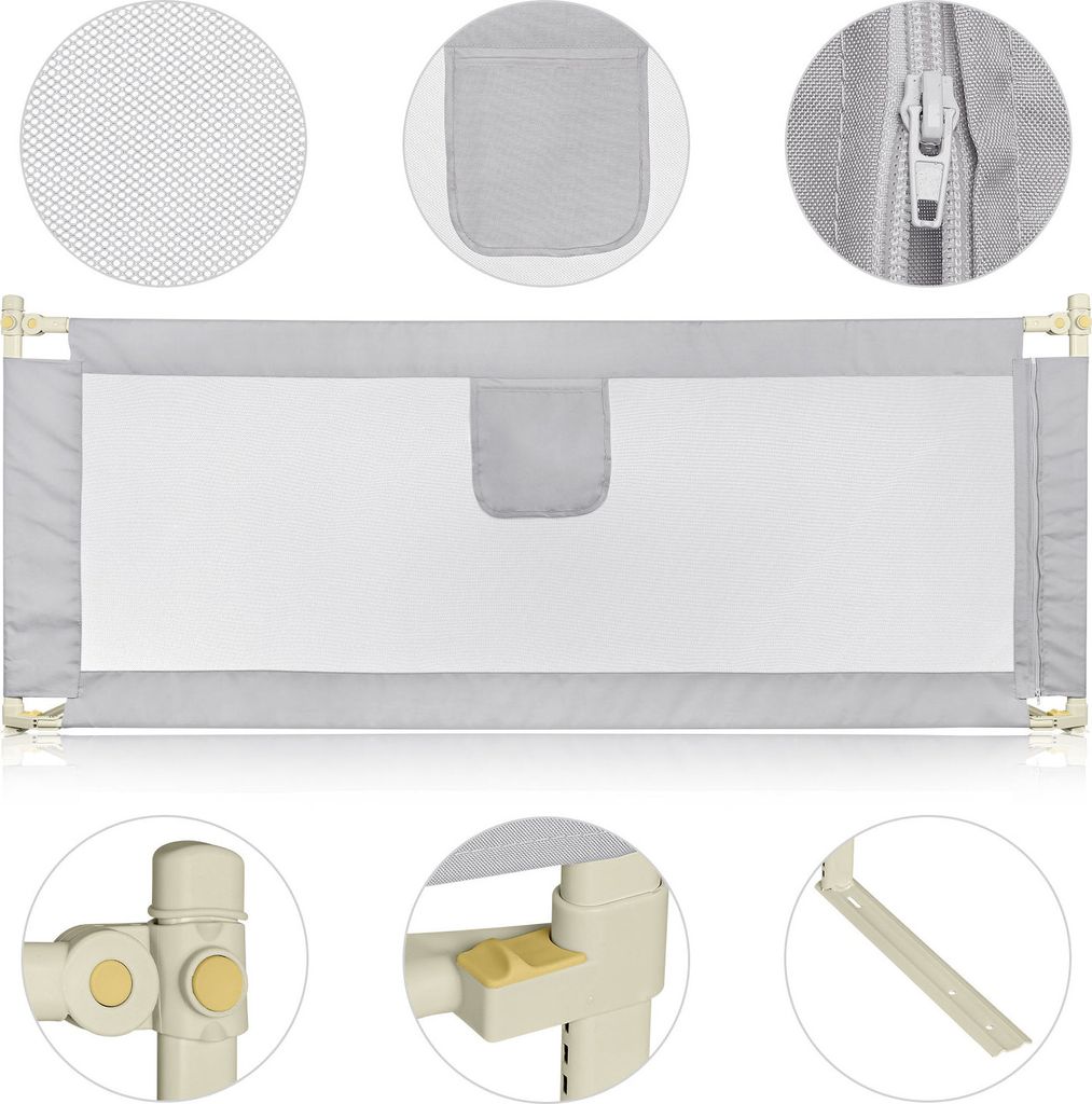 Damit dein Kleines sicher schläft! Dieses ARREGUI Bettschutzgitter verhindert, dass Kinder nachts aus dem Bett fallen. Perfekt für die Übergangszeit vom Kinderbett zum großen Bett - etwa ab 18 Monaten bis 5 Jahren oder 22,5kg. Mit 102cm Breite und 42cm Höhe bietet es optimalen Schutz, lässt aber genug Platz zum problemlosen Auf- und Absteigen. Das klappbare System ist super praktisch: Einfach runterklappen zum Bettenmachen oder wenn du dich zum Vorlesen hinlegen willst. Der abnehmbare Stoff aus 100% Polyester ist waschbar (40°C Handwäsche) und durchsichtig - du siehst dein Kind immer. Einfache Montage ohne Schrauben, mit allem nötigen Zubehör inklusive Sicherheitsgurt. Zertifiziert nach DIN EN 71-3 und BS 7972 - dein Kind ist in sicheren Händen. Mehr Sicherheit und Ruhe für Eltern - das ist unbezahlbar!