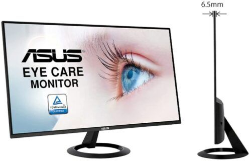 Endlich entspannt arbeiten und zocken! Der ASUS VZ24EHE ist nicht irgendein Monitor - der hat's richtig drauf. Mit 23,8 Zoll Full HD siehst du jedes Detail kristallklar. Das IPS Panel sorgt dafür, dass die Farben aus jedem Winkel hammer aussehen. Und das Beste: Deine Augen werden's dir danken! Der Monitor ist TÜV-zertifiziert für flimmerfreie Darstellung und reduziertes Blaulicht. Macht langes Arbeiten oder Gaming-Sessions viel angenehmer. 75 Hz Bildwiederholrate und FreeSync sorgen für mega flüssige Bewegungen - absolut geil für Games oder Videos! Das ultra-schlanke Design sieht nicht nur stylisch aus, sondern spart auch Platz auf deinem Schreibtisch. Mit HDMI und D-Sub Anschlüssen bist du flexibel für alle Geräte. Ob Homeoffice, Netflix oder Zocken - dieser Allrounder macht einfach alles mit. Rahmenlos sieht er übrigens auch noch richtig edel aus, besonders wenn du mehrere Monitore nebeneinander stellst.