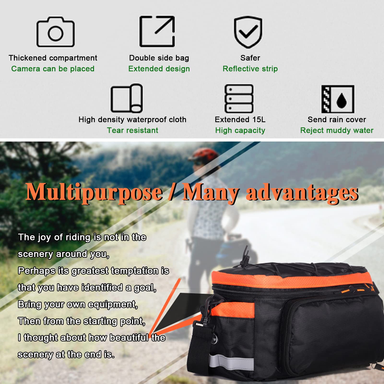 • AUMTISC Fahrradtasche 15L Wasserdicht - Gepäckträgertasche Mit Reflektorstreifen