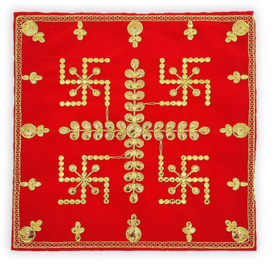 Alter, diese Gebetsmatten machen deinen Tempelbereich richtig edel! 8 Stück im Set, jeweils 12,7x12,7cm groß - perfekt für kleine Idole und Gebetsecken. Aus hochwertigem rotem Samt mit wunderschöner goldener Stickerei. Die doppelte Bordüre mit Kreis- und Blattmustern sieht einfach königlich aus! Ob für tägliche Puja oder besondere Feste - deine Götter stehen auf was Besonderes. Der Samt ist super weich und die Stickerei hält ewig. Macht jeden Gebetsbereich zum Blickfang! Einfach die Idole draufstellen und die spirituelle Atmosphäre genießen. Auch super als Geschenk für religiöse Anlässe - damit machst du garantiert eine gute Figur!