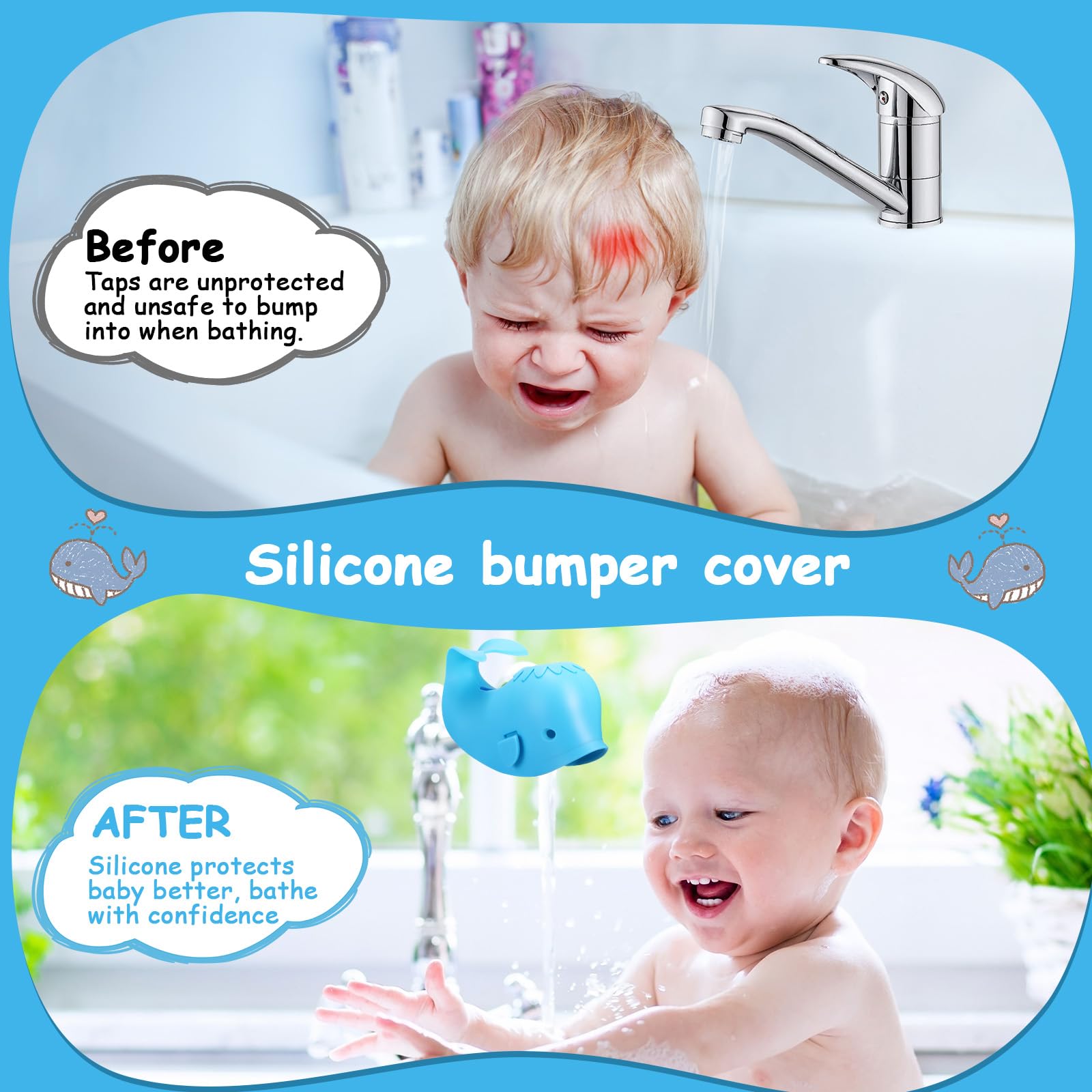 Damit sich deine Kleinen nicht den Kopf stoßen! Diese süße Wal-Abdeckung für den Wasserhahn macht das Badezimmer sofort sicherer. Maße: 13,2x10,8x7,8 cm in beige. Aus robustem Material, einfach zu montieren und zu reinigen. Der Wal sieht nicht nur niedlich aus, sondern schützt wirklich vor schmerzhaften Stößen. Perfekt für Familien mit kleinen Kindern - ob zu Hause, im Kindergarten oder in der Kita. Macht sogar Spaß beim Baden und regt die Fantasie an. Einfach über den Wasserhahn stülpen und schon ist die Badezeit viel entspannter. Ein kleines Teil, das einen großen Unterschied macht für die Sicherheit deiner Kinder!