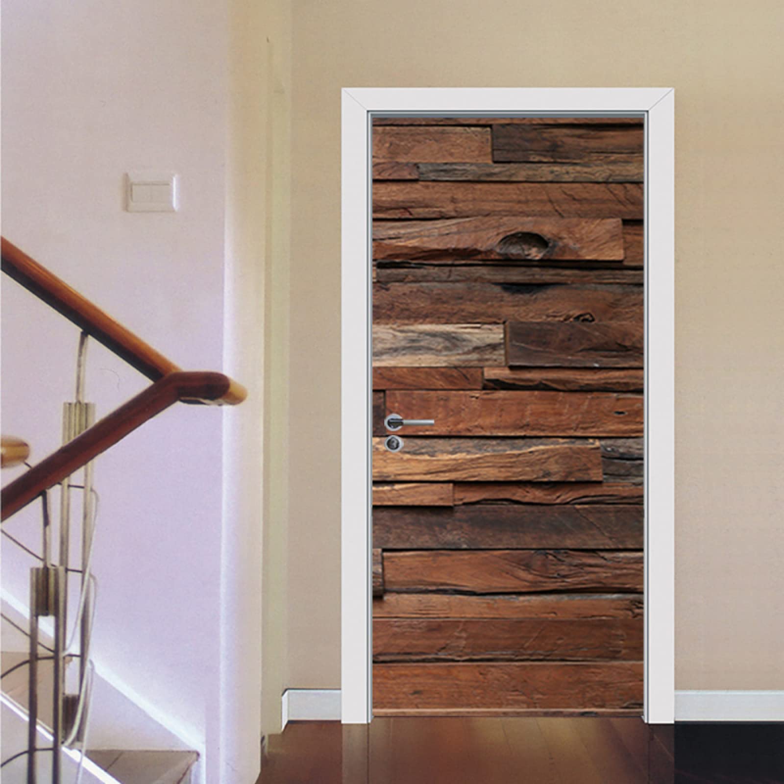 Deine Tür sieht langweilig aus? Mit dieser selbstklebenden Türtapete in trendiger Holzoptik machst du daraus einen echten Hingucker! Die Folie besteht aus hochwertigem PVC, ist wasserdicht, abziehbar und hinterlässt keine Klebereste. Einfach die Türgriffe entfernen, die Oberfläche gut reinigen und die beiden Teile der Tapete anbringen - schon verwandelst du deine langweilige Tür in ein stylisches Möbelstück! Mit den Maßen 95x210 cm (andere Größen verfügbar) passt sie an die meisten Standardtüren. Die 0,3 mm dicke Folie ist robust und hält auch mal was aus. Aber Vorsicht: Bevor du bestellst, miss lieber nochmal deine Tür nach, damit alles perfekt passt! Die lebendige 3D-Optik wirkt täuschend echt und verleiht jedem Raum sofort mehr Charme. Und das Beste: Wenn dir das Design irgendwann nicht mehr gefällt, ziehst du die Folie einfach wieder ab und probierst was Neues aus. So renovierst du ganz ohne Handwerker und sparst dabei noch Geld!