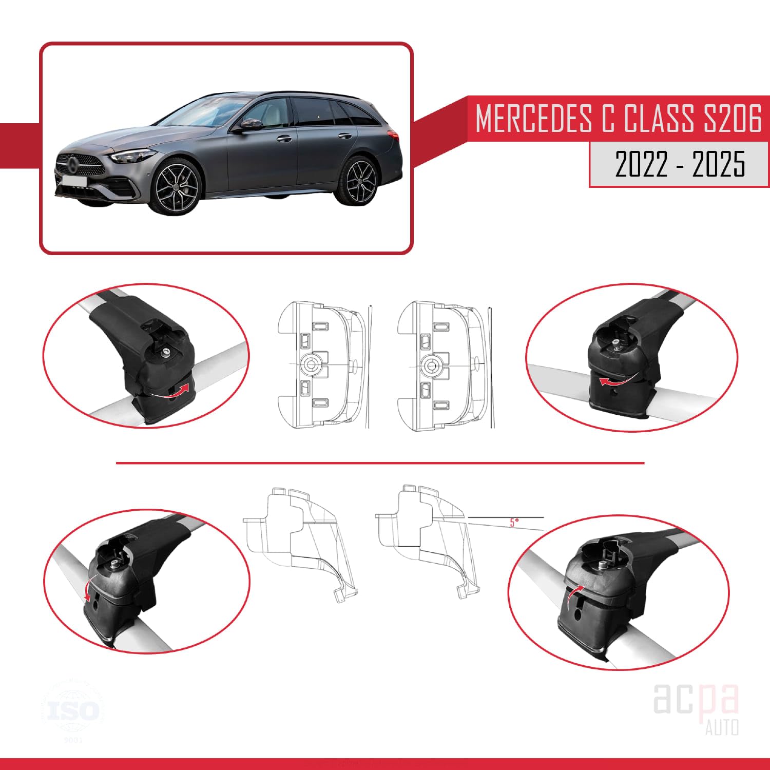 Mehr Stauraum für deine Mercedes C-Klasse S206 (2022-2025)! Dieser hochwertige Dachträger von acpar bietet dir die Möglichkeit, Fahrradträger, Dachboxen oder Skihalter sicher zu transportieren. Das ACE-2 System aus eloxiertem Aluminium ist robust, korrosionsbeständig und passt perfekt auf deine Dachreling. Maximale Belastung: 75 kg während der Fahrt, 150 kg im Stand. Mit Diebstahlschutz und einfacher Montage - eine Person kann den Träger ohne professionelle Hilfe installieren. Kein Zuschneiden der Aluminiumschienen nötig! Hergestellt in der Türkei mit hochwertigen Materialien. Perfekt für Urlaube, Wochenendausflüge oder wenn mal mehr transportiert werden muss.