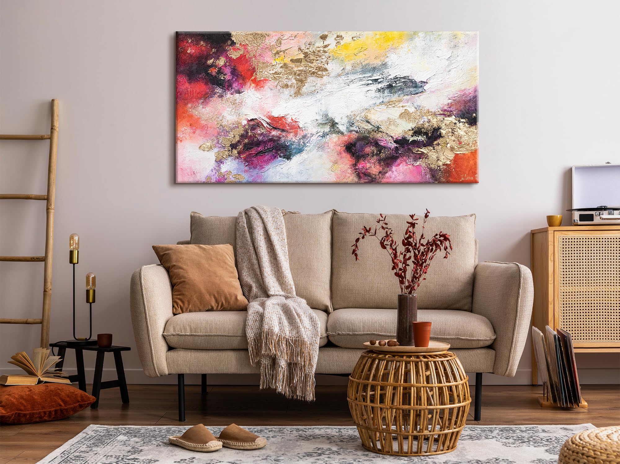 Bring den Zauber eines Sommerregens in dein Zuhause! Dieses atemberaubende Acryl-Gemälde wurde von unseren Künstnern komplett von Hand auf eine hochwertige Leinwand gemalt. Mit den Maßen 120x80 cm ist es ein echter Hingucker in jedem Raum. Die satten Brauntöne und die lebendige Textur des Sommerregens schaffen eine ganz besondere Atmosphäre. Gefertigt mit professionellen Acrylfarben, die gesundheitlich unbedenklich und langlebig sind. Die Leinwand ist auf einen soliden Keilrahmen aus Naturholz aufgezogen und wird mit 2 Aufhängevorrichtungen geliefert - so kannst du das Bild sofort nach dem Auspacken aufhängen! Jedes Gemälde wird vom Künstler signiert und mit einem Echtheitszertifikat geliefert. Seit 2005 kreieren wir einzigartige Kunstwerke für Kunden weltweit. Ob im Wohnzimmer, Schlafzimmer oder Büro - dieses abstrakte Kunstwerk verleiht deinen vier Wänden sofort mehr Stil und Persönlichkeit. Ein Unikat, das garantiert zum Gesprächsstoff wird!