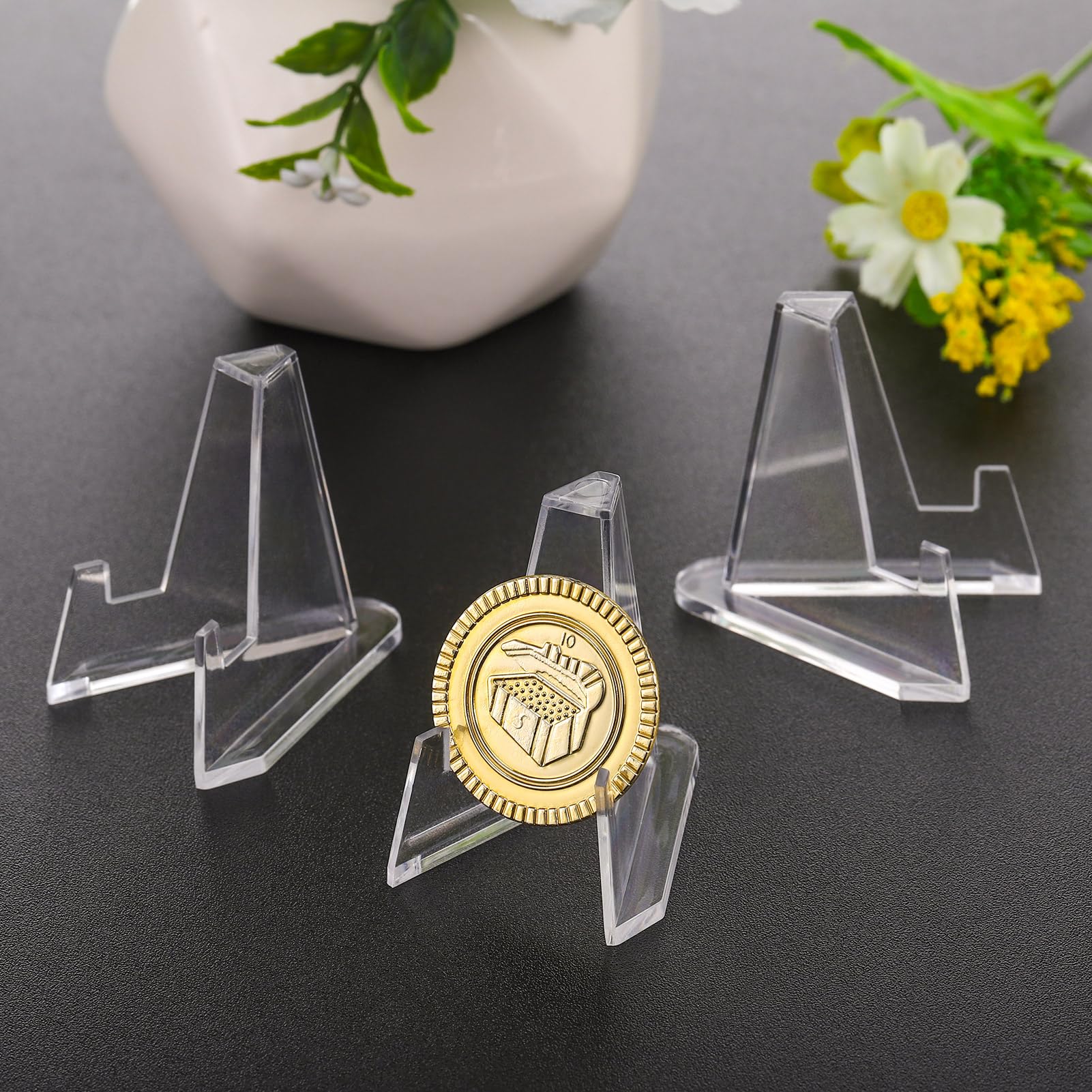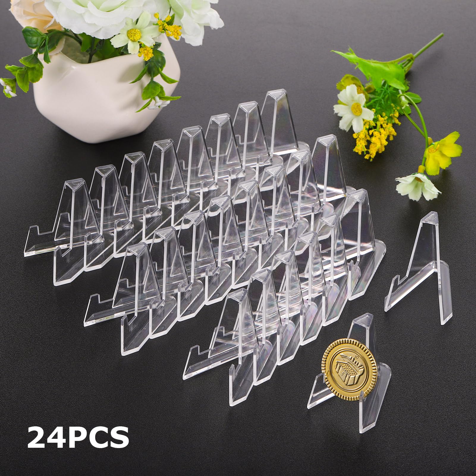 Sammler, Händler und Deko-Fans - dieses 25er Set Acryl-Aufsteller ist ein echter Game-Changer! Super durchsichtig und unauffällig, damit eure Sammlerstücke richtig zur Geltung kommen. Das stabile Dreiecks-Design steht bombenfest und gibt den Karten, Fotos oder Münzen den perfekten Neigungswinkel. Ideal für Sammelkarten (Pokémon, Magic, etc.), Münzen, Medaillen, Fotos, Postkarten oder kleine Figuren. Ob auf dem Schreibtisch, in der Vitrine oder auf Messen - hier wird alles perfekt präsentiert! Die Acryl-Ständer sind leicht, aber dennoch robust und wiederverwendbar. Perfekt für den Händlerstand, für Ausstellungen oder einfach zur Dekoration daheim. Macht sich super bei Tauschbörsen oder Conventions. Einfach die Sammelkarte reinstellen und fertig - kein lästiges Umfallen mehr! Auch für kleine Bücher, CDs oder als Halter für Namensschilder bei Events geeignet. Mit 25 Stück im Set habt ihr genug für die ganze Sammlung oder könnt verschiedene Arrangements ausprobieren. Endlich eine professionelle Präsentation für eure Schätze - ohne viel Aufwand und für wenig Geld!