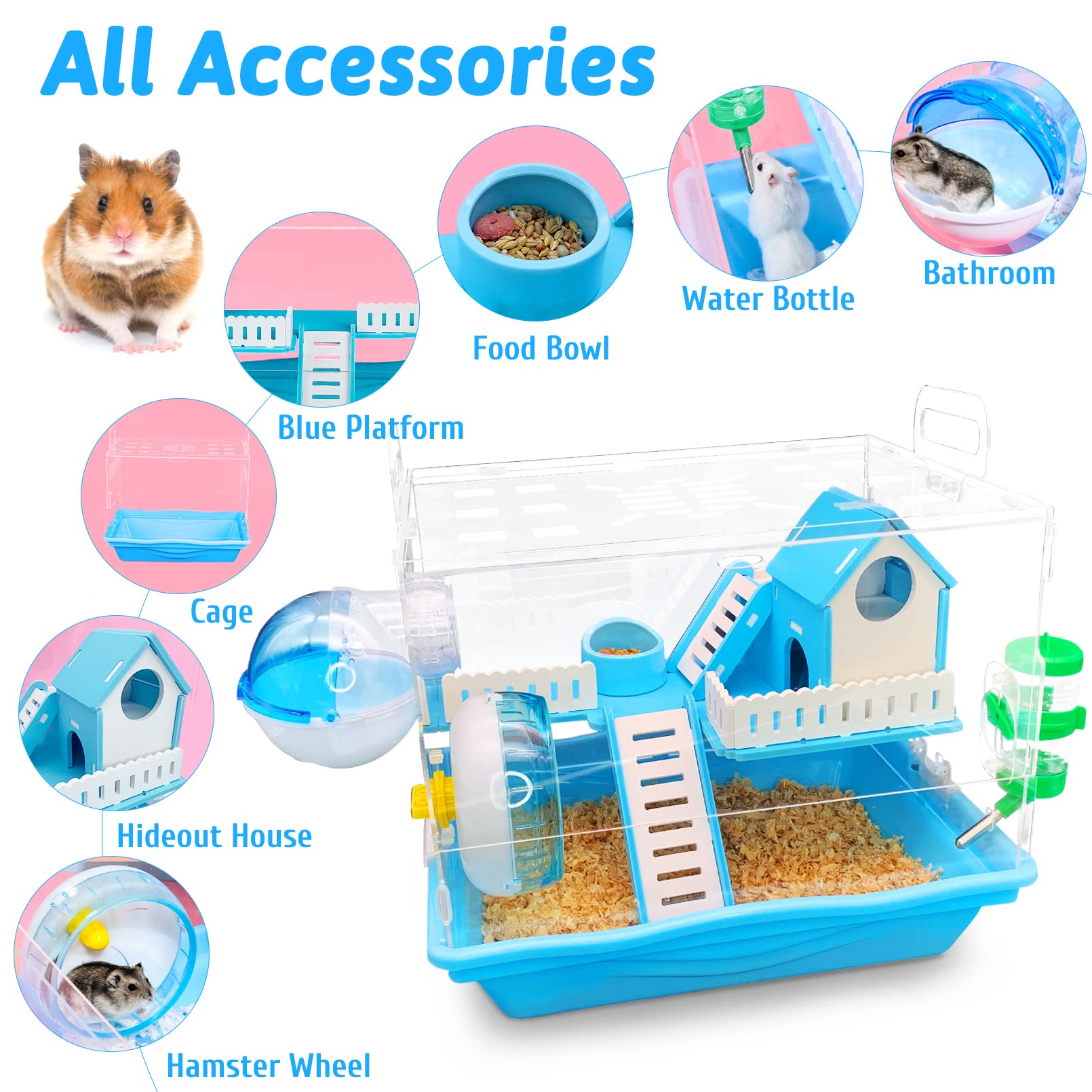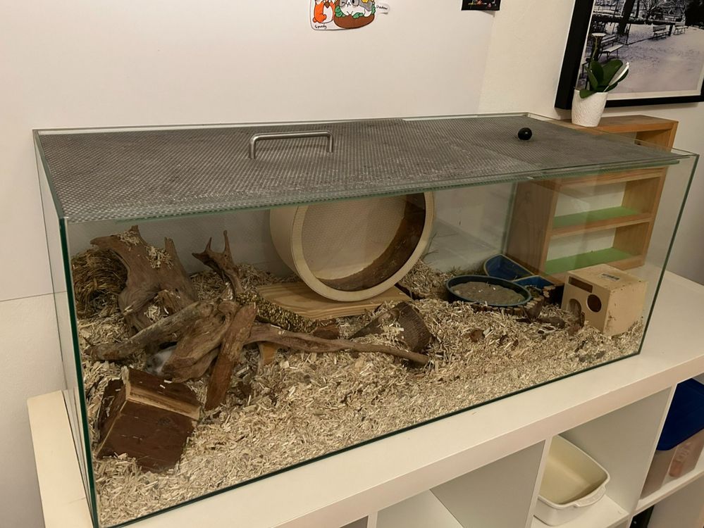 Hey du! Suchst du ein cooles Zuhause für deinen kleinen Freund? Dieser Hamsterkäfig aus Acryl ist genau das Richtige! Mit dem durchsichtigen Design siehst du immer, was dein Tierchen so treibt - und es kann dich auch beobachten! Das ist super gegen Langeweile. Der Käfig hat mehrere Ebenen, damit dein Hamster, Meerschweinchen oder Igel genug Platz zum Toben hat. Durch die Schraubinstallation und 2 Stützstangen ist alles mega stabil und sicher. Die Belüftungslöcher sorgen für frische Luft, und reinigen ist auch kein Problem - einfach mit nem feuchten Tuch drüberwischen! Stell dir vor: Dein Kleines klettert vergnügt rum, während du von außen alles perfekt beobachten kannst. Kein Verstecken mehr in dunklen Ecken! Der große Vorteil: Du kannst den Käfig easy mit verschiedenen Plattformen und Spielzeugen ausstatten - deiner Fantasie sind keine Grenzen gesetzt! Ob im Kinderzimmer, Wohnzimmer oder Büro - dieser Käfig sieht überall gut aus und bietet deinem Tier ein artgerechtes Zuhause. Und das Beste: Die Installation ist super einfach, also musst du kein Handwerker-Profi sein! Also - bereit für das schönste Nagetier-Zuhause der Stadt?