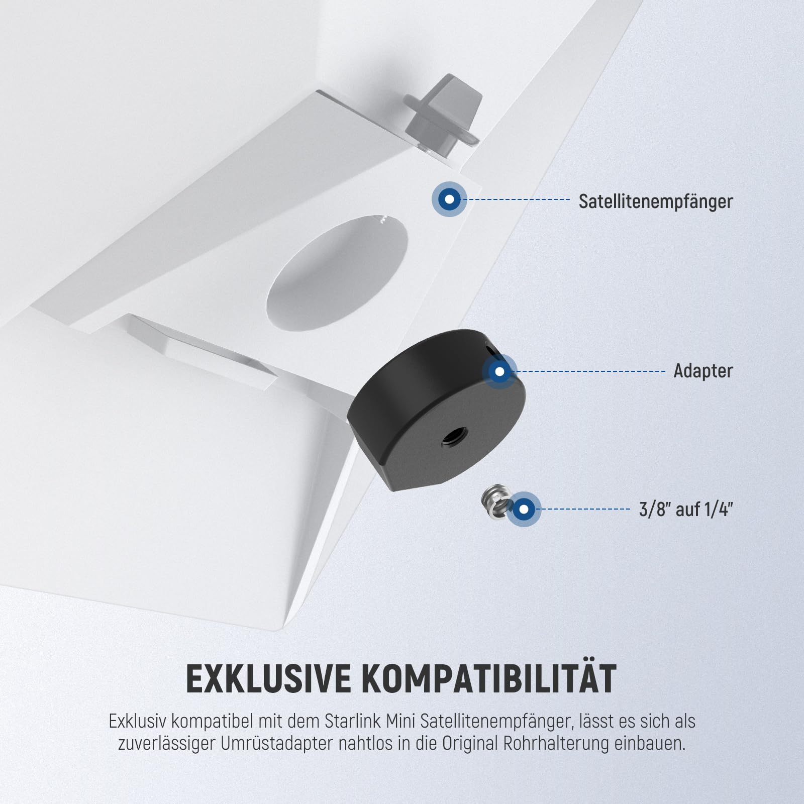 Kompatibel mit den meisten Stativen: 1/4-20 Zoll Standard-Gewinde, inklusive Adapter für 3/8-16 Gewinde. Perfekt für Tripods, Halterungen oder Fixierschellen. Einfache Montage, maximale Flexibilität für deine Starlink-Verbindung!