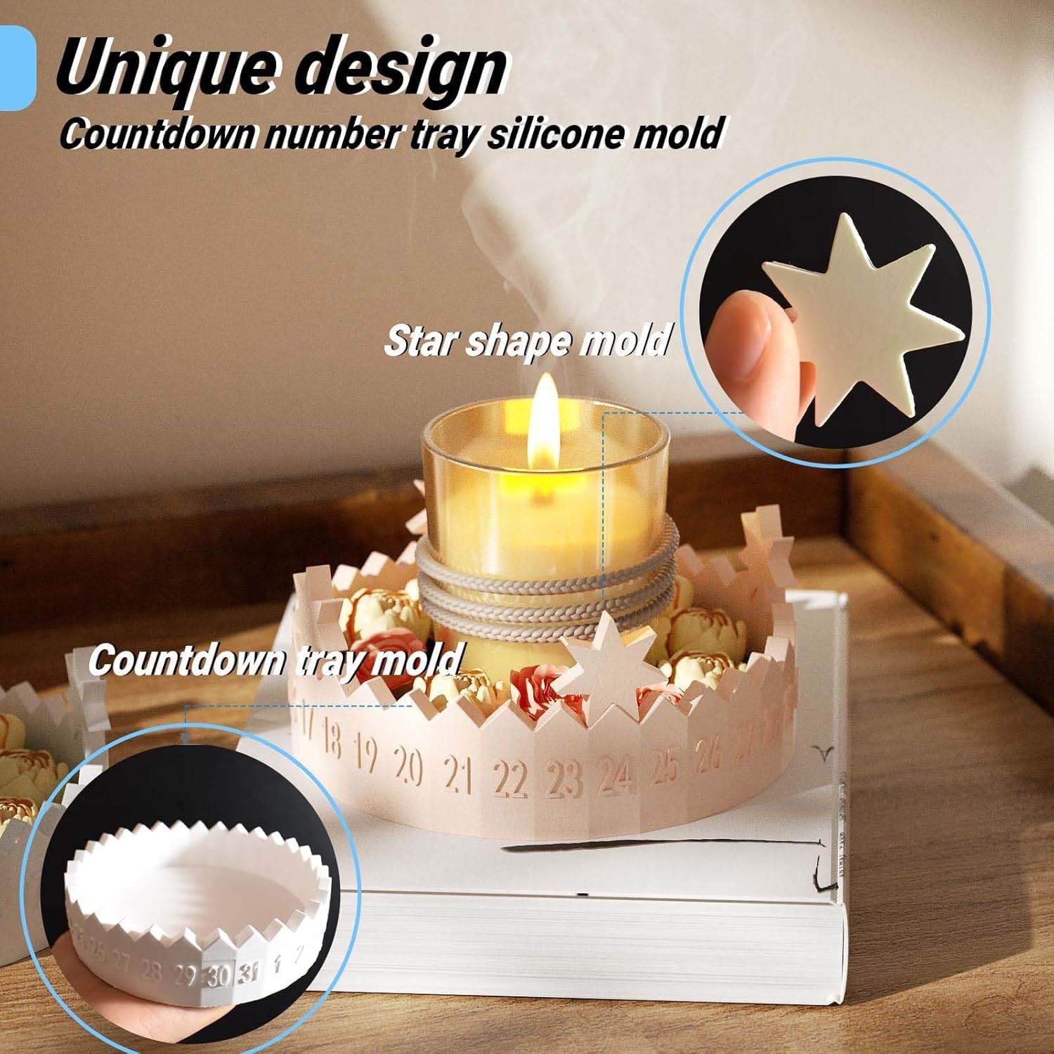 Kreative Weihnachtszeit garantiert! Mit dieser 2-teiligen Silikonform kannst du wunderschöne Adventskalender und Weihnachtsdekoration selbst gestalten. Die Form ist super einfach zu verwenden und wiederverwendbar.\n\nProduktdetails:\n• Material: Hochwertiges Silikon\n• Gewicht: 150g\n• Inhalt: 1x Adventskalender-Form, 1x Sternform\n• Lebensmittelecht und flexibel\n\nEinfache Handhabung:\n• Einfaches Entfernen der gegossenen Stücke\n• Perfekt für Beton, Gips oder Zement\n• Glatte Oberfläche für saubere Ergebnisse\n• Symmetrische Formen mit filigranen Details\n\nIdeale für:\n• Weihnachtsbastelprojekte\n• Adventskränze und Kerzenhalter\n• DIY-Geschenke\n• Familien-Bastelaktionen\n\nDie Formen sind platzsparend und ermöglichen einen kreativen Countdown bis Weihnachten. Mit den klaren Zahlen ist die Datumsverfolgung ganz einfach.\n\nTipp: Einfach das gewünschte Material einfüllen, trocknen lassen und vorsichtig entnehmen - schon hast du einzigartige Weihnachtsdekoration!