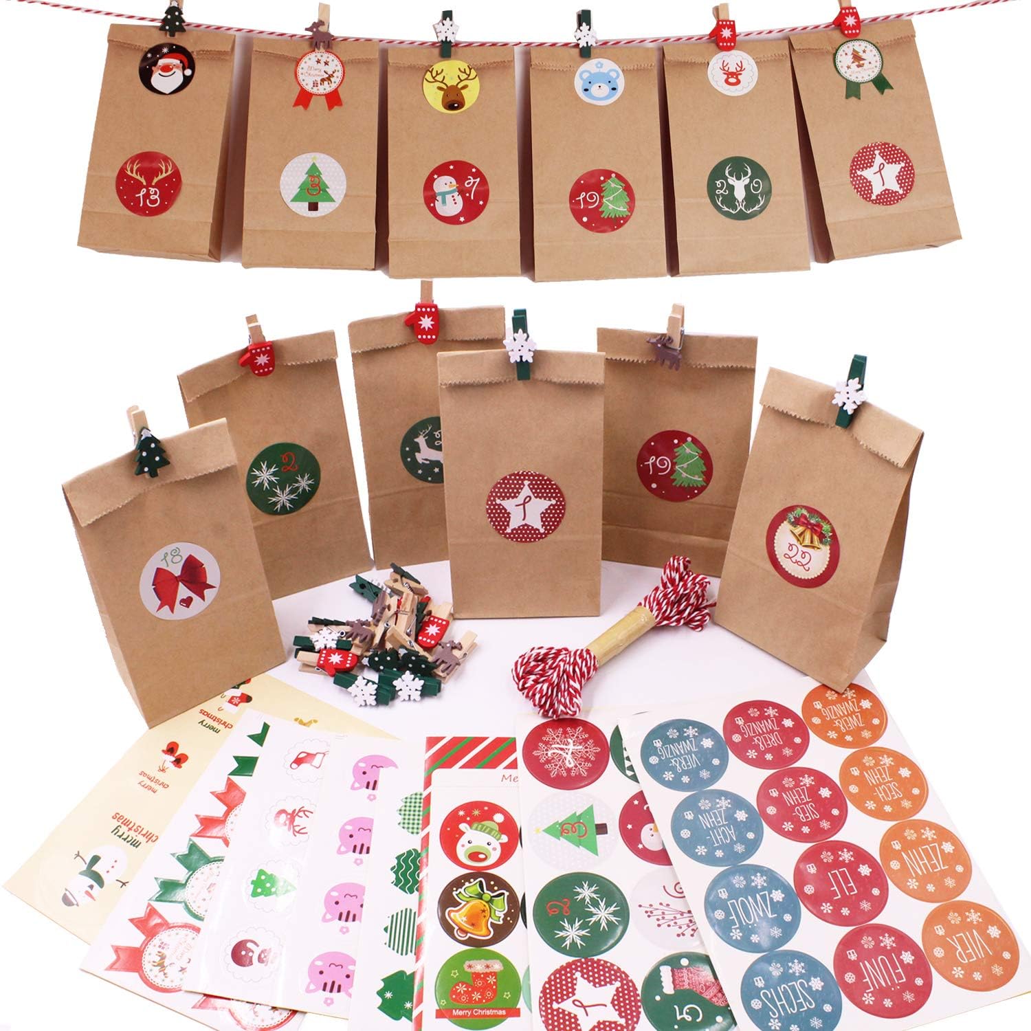 Kreative Weihnachtsvorfreude selbst gestalten! Mit diesem komplettem DIY Adventskalender-Set kreierst du einen ganz persönlichen Countdown bis Weihnachten. Enthalten sind 24 hochwertige Kraftpapiertüten in 8 verschiedenen, modernen Designs mit praktischem Blockboden - jede Tüte misst 25x12 cm und bietet genug Platz für Süßigkeiten, kleine Geschenke oder liebevolle Botschaften. Dazu bekommst du 24 runde Aufkleber mit den Zahlen 1-24 in brillanten Farben und 44 mm Durchmesser. Die extra stark klebenden Aufkleber halten sicher auf den Tüten und auch auf Stoffsäckchen. Einfach die Tüten befüllen, mit den Aufklebern versehen und aufhängen - schon ist dein individueller Adventskalender fertig! Perfekt für Familien, als Geschenk oder fürs Büro. Von einem deutschen Unternehmen designed - endlosschenken für unendlich viele kreative Möglichkeiten in der Weihnachtszeit!
