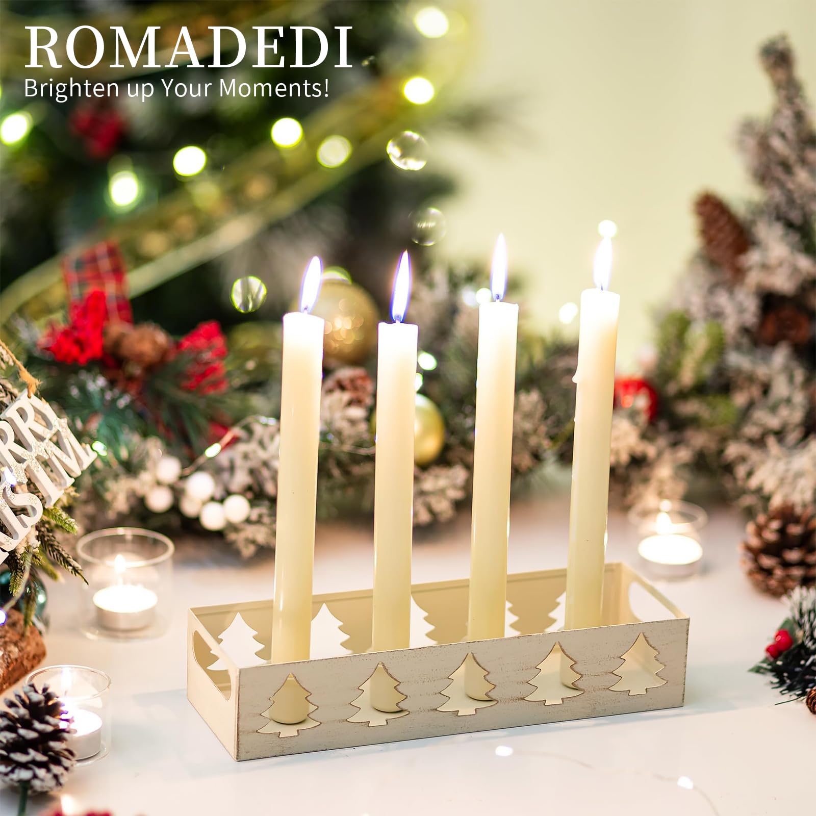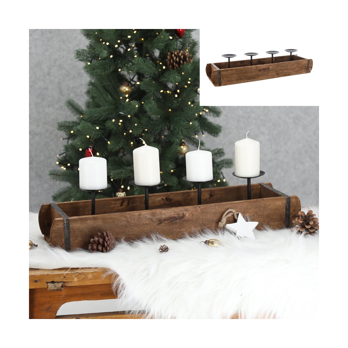 Weihnachtszauber für dein Zuhause! Dieser wunderschöne Adventskranz aus Holz mit Metall-Projektionsplatten verwandelt jeden Raum in eine winterliche Märchenlandschaft. Mit den Maßen 25,8x12x8 cm ist er perfekt für Tische, Sideboards oder Fensterbänke. Für 4 Teelichter mit 4cm Durchmesser geeignet - die inkludierten Elch- und Tannenbaum-Projektionen werfen bezaubernde Schatten an die Wand. Die Holz-Metall-Kombination sieht nicht nur edel aus, sondern ist auch super stabil. Perfekt für die Adventszeit, aber auch als Herbstdeko oder für gemütliche Winterabende. Schafft sofort festliche Stimmung! Ein ideales Geschenk für Weihnachten oder Erntedank - deine Freunde und Familie werden begeistert sein. Einfach die Teelichter entzünden, das Licht dimmen und den magischen Projektionseffekten zusehen. So wird jede Weihnachtsfeier zu einem unvergesslichen Erlebnis! Einfach aufstellen und sich über festliche Gemütlichkeit freuen.