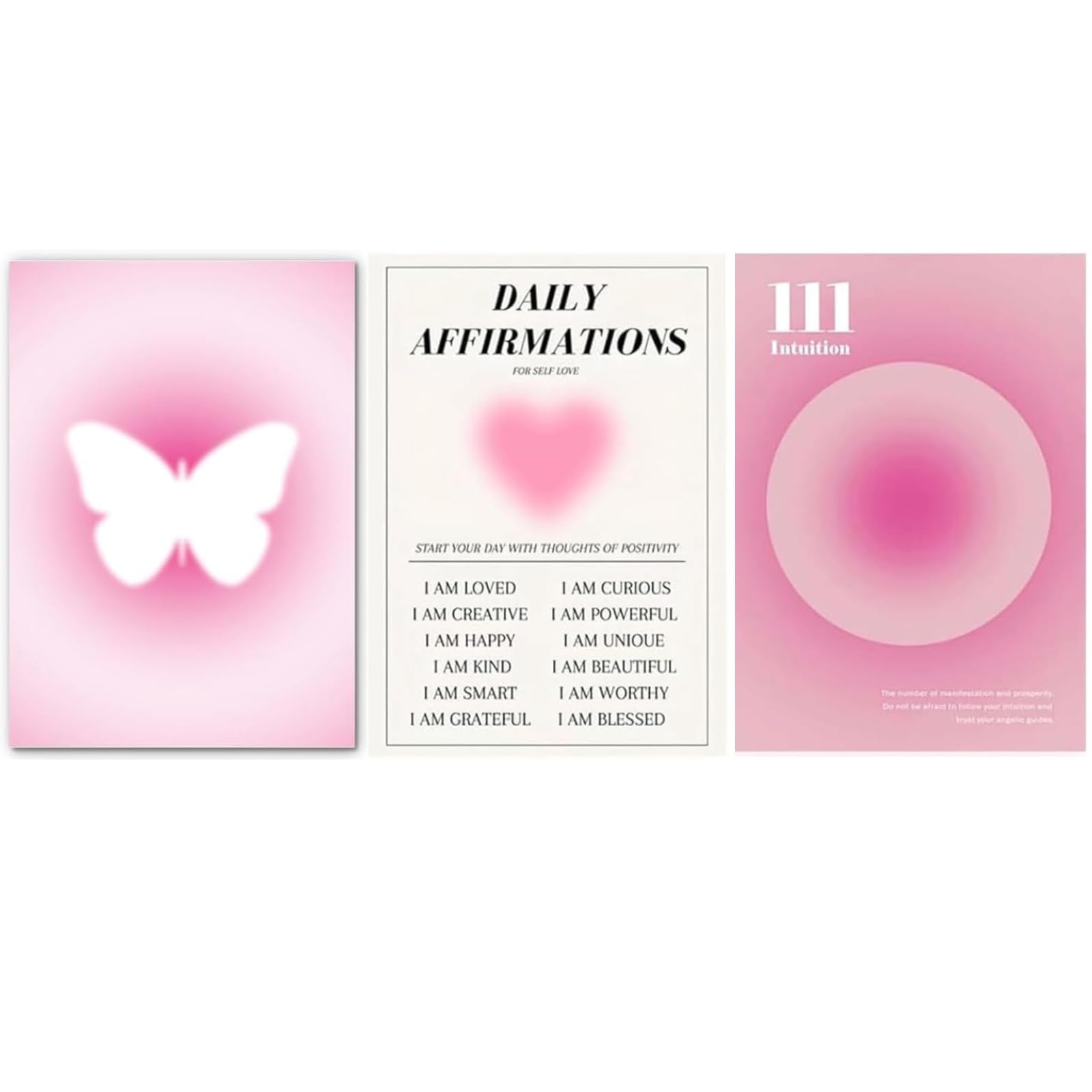 Bring dein Zimmer zum Strahlen mit diesen traumhaften Rosa-Bildern! Das 3er-Set mit Schmetterlingen, Engelszahlen und motivierenden Sprüchen sorgt für eine richtig gemütliche Wohlfühl-Atmosphäre.