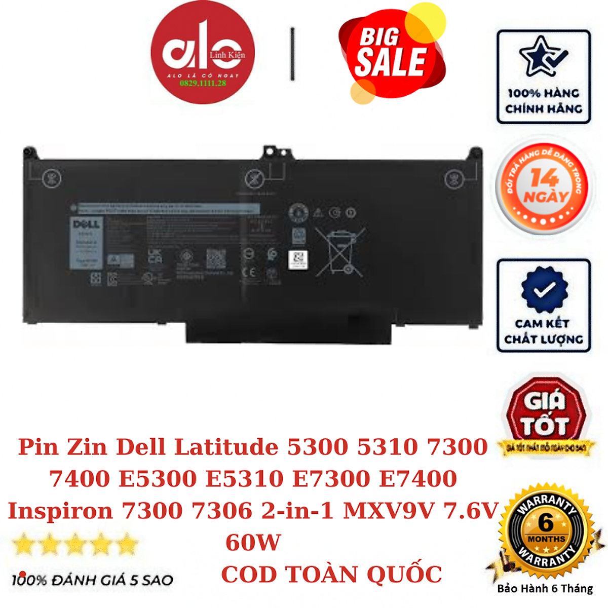 Dein Dell Laptop läuft wieder wie neu! Dieser MXV9V Ersatzakku mit 7.6V und 60Wh/7500mAh passt perfekt für Latitude 5300, 5310, 7300 und 7400 Modelle. Auch für die 2-in-1 Versionen (außer Silber).