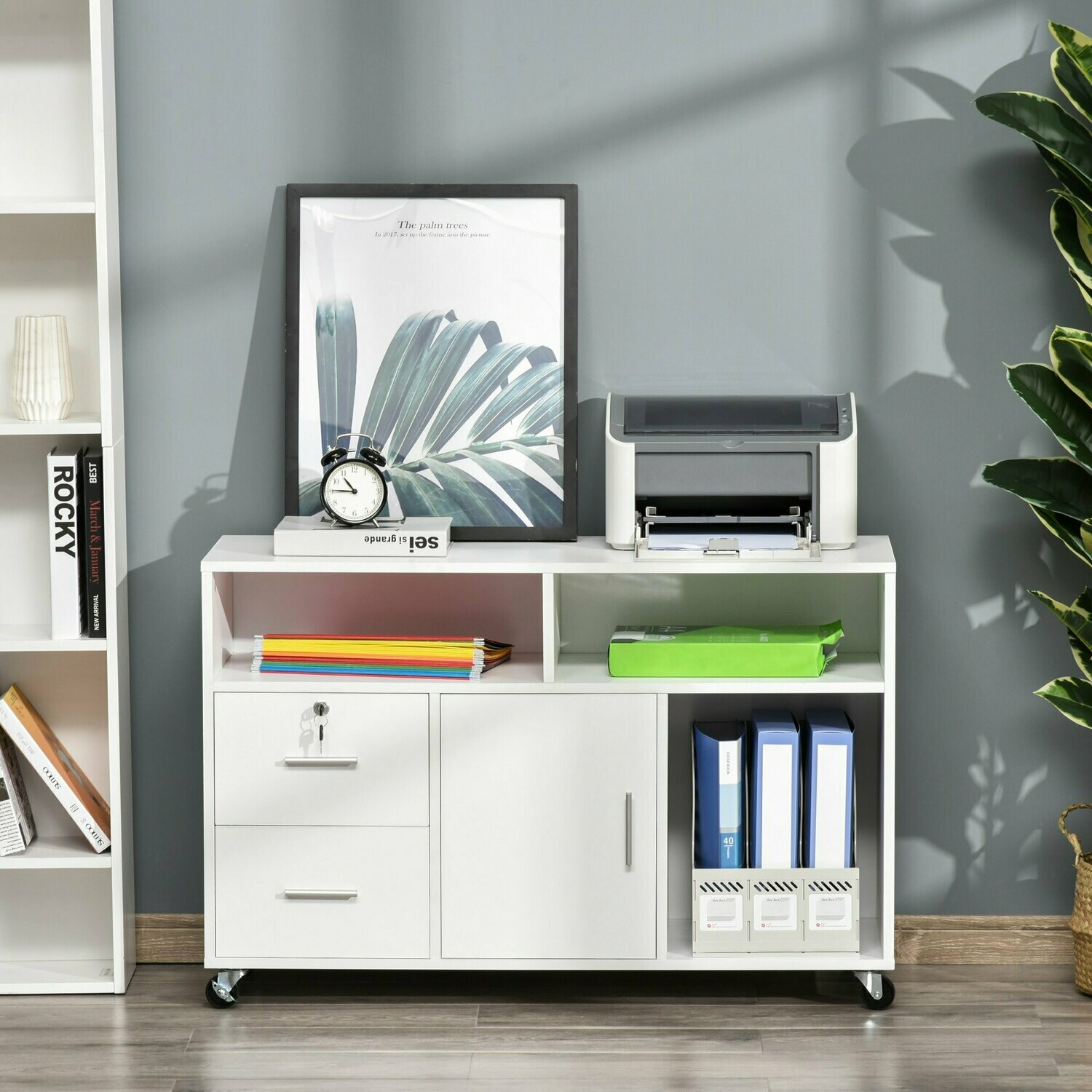 Praktischer Rollcontainer fürs Büro! Aus stabilem Stahl in hellgrau, 39x45x67 cm klein. Hat 2 Schubladen mit 3-fach Kugellagerung - laufen super leicht und kannst sie komplett ausziehen. Jede Schublade trägt 25 kg, also insgesamt 50 kg. Mit abnehmbaren Hängestangen für A4, Letter oder Legal Ordner. Und mit Schlössern, damit deine Unterlagen sicher sind. 5 Rollen unten, 2 mit Bremsen - lässt sich easy verschieben. Passt perfekt unterschnellen Schreibtisch. Muss zusammgebaut werden, aber lohnt sich! Sieht professionell aus und bringt Ordnung ins Chaos.