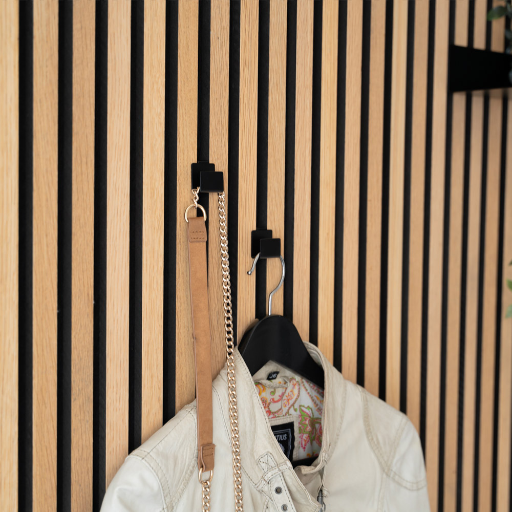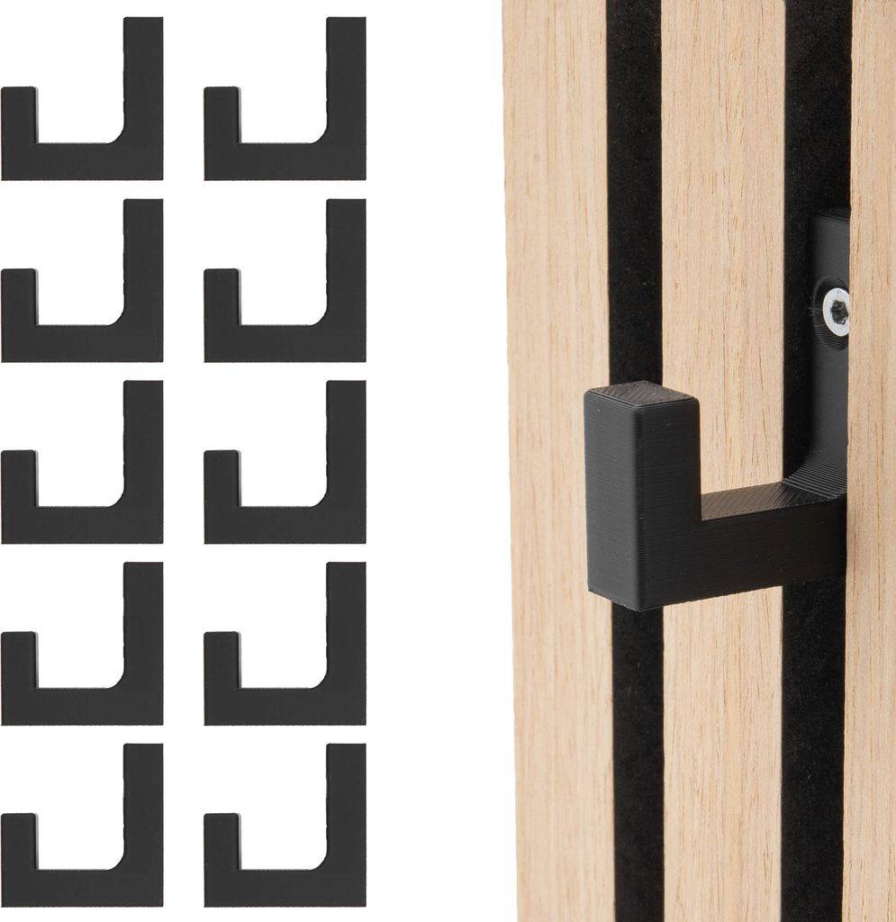 Du hast Akustikpaneele und suchst noch eine praktische Lösung zum Aufhängen? Dann sind diese Haken genau das Richtige! Das 8er-Set bietet dir unendlich viele Möglichkeiten. Egal ob Jacken, Taschen, Handtücher oder Deko - alles findet hier Platz. Die Montage ist super easy: Einfach die beiliegenden Schrauben nehmen und schon kannst du loslegen. Besonders clever: Die Haken lassen sich sowohl horizontal als auch vertikal anbringen. Das schwarze Design sieht nicht nur stylisch aus, sondern passt sich jedem Einrichtungsstil an. Aus pulverbeschichtetem Stahl gebaut, halten die Haken bis zu 10 kg pro Stück! Und das Beste: Sie sind speziell für SONIC Akustikpaneele entwickelt worden. So hast du die Gewissheit, dass alles perfekt zusammenpasst. Dein Zuhause wird nicht nur schöner, sondern auch ordentlicher! Kein Chaos mehr an der Tür, keine Jackenberge auf dem Stuhl. Endlich mehr Ordnung und das ohne großen Aufwand. Die kompakte Größe von 4,3 x 3 x 2,6 cm pro Haken sorgt dafür, dass sie nicht zu viel Platz wegnehmen, aber trotzdem robust genug sind. Einfach genial für mehr Organisation im Alltag!