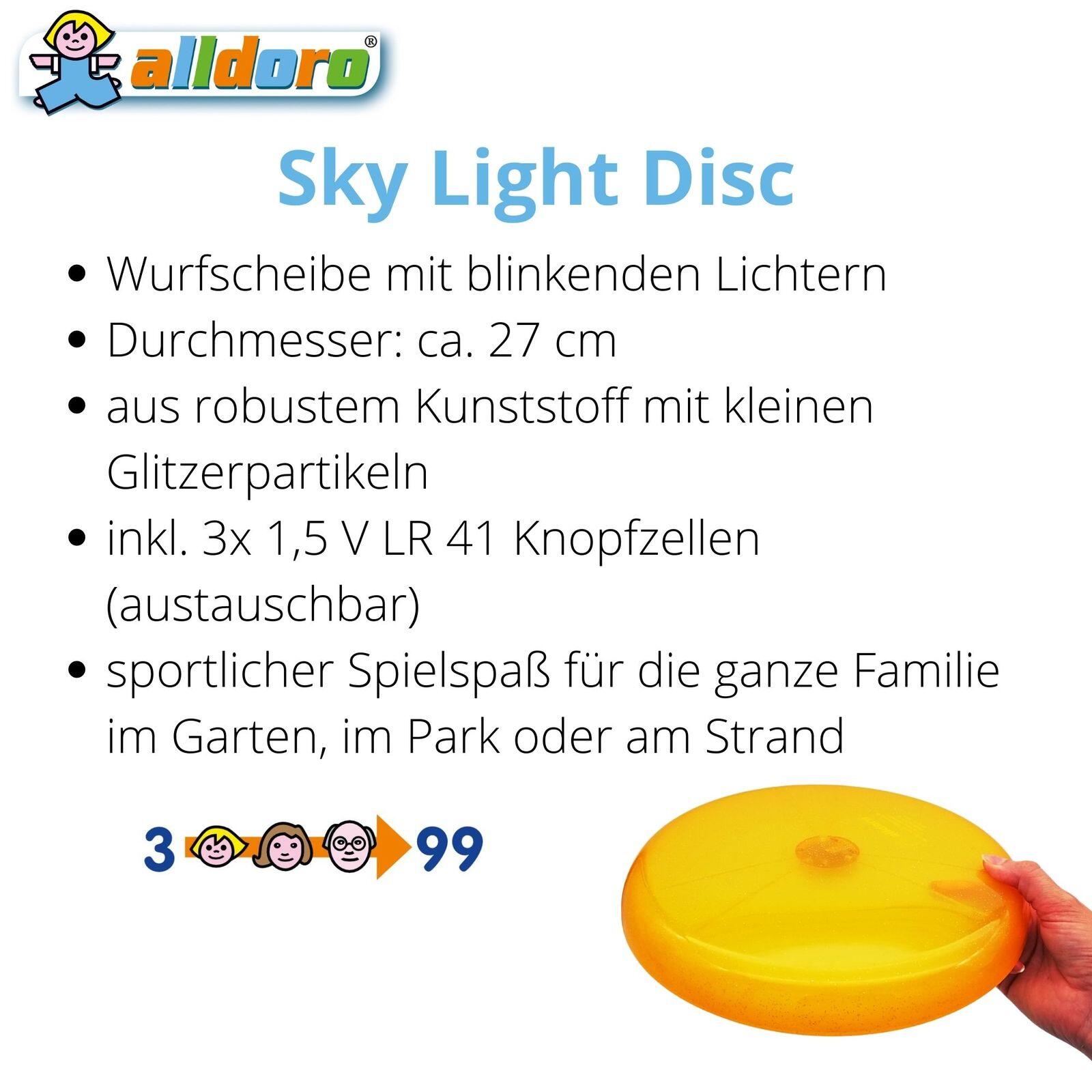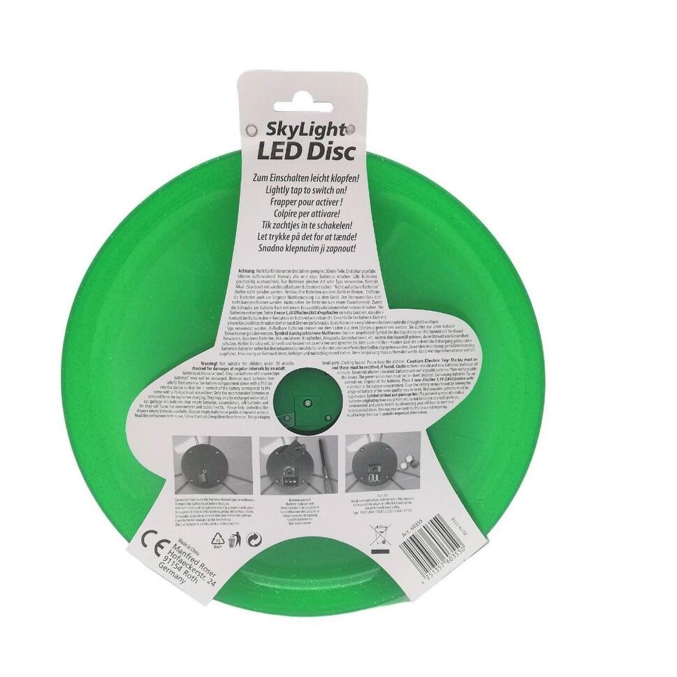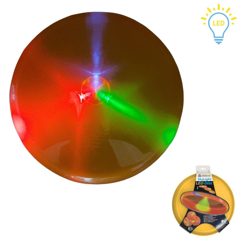 Boah, diese Wurfscheibe ist ja mal richtig cool! Stell dir vor: Du spielst Frisbee und wenn's dunkel wird, fängt die Scheibe an zu leuchten! Drei LED-Lichter in verschiedenen Farben - das sieht mega aus in der Dämmerung! Mit 27cm Durchmesser perfekt für Kinderhände, aber auch für Erwachsene super! Aus stabilem, wetterfestem Kunststoff - hält auch mal einen Aufprall aus! Fördert Bewegung, Geschicklichkeit und die Koordination zwischen Auge und Hand! Perfekt für den Garten, Park, Strand oder Kindergeburtstage! Die Batterien (3x LR41) sind schon dabei - gleich losspielen! In orange, grün und blau erhältlich - such dir deine Lieblingsfarbe aus! Die LEDs blinken in verschiedenen Mustern - total faszinierend für Groß und Klein! Macht auch nach Einbruch der Dunkelheit noch Spaß - die Spielzeit verlängert sich einfach! Einfach werfen, fangen und staunen! So macht Bewegung richtig Laune! Ob alleine, zu zweit oder in der Gruppe - immer ein Highlight! Einfach genial für alle, die draußen aktiv sein wollen!