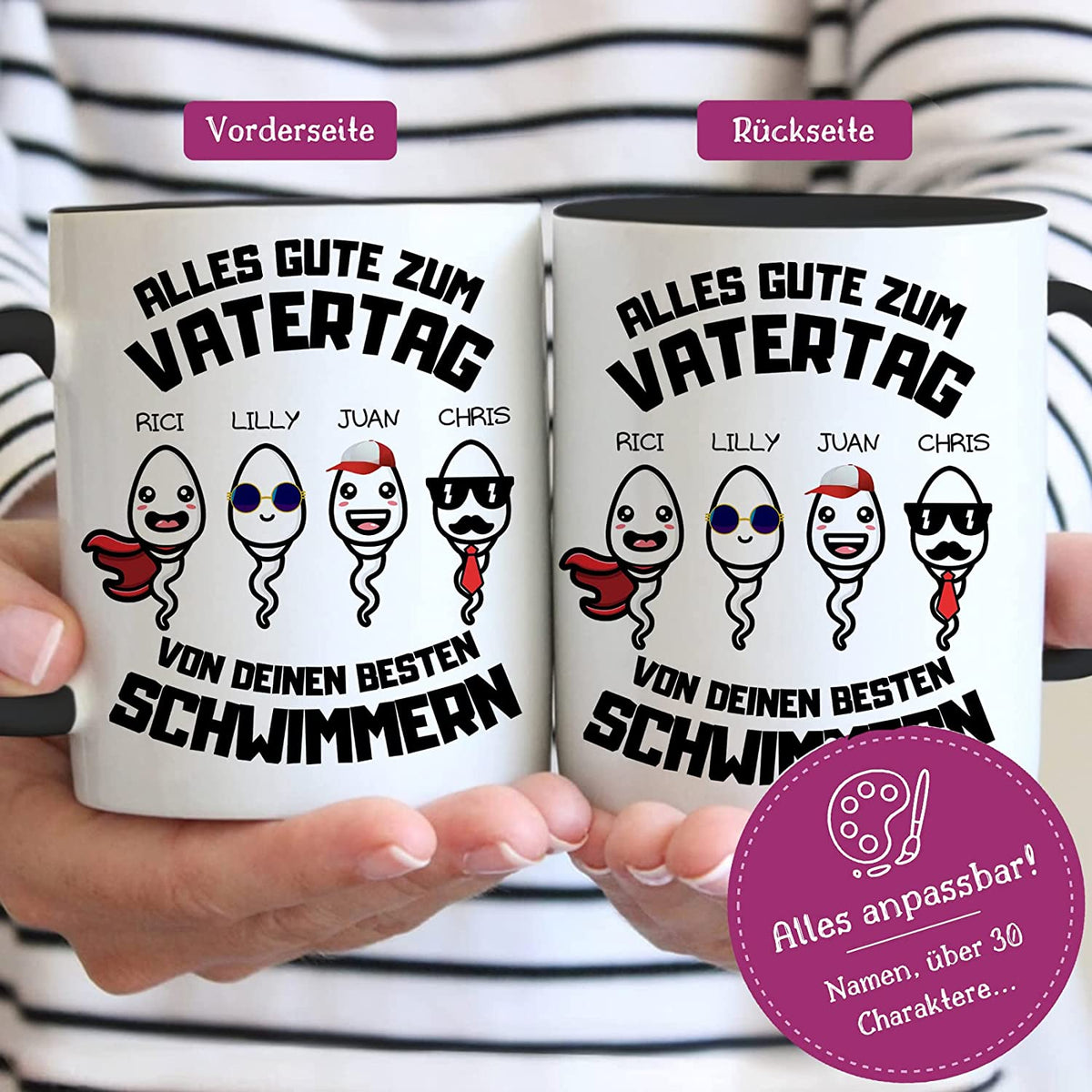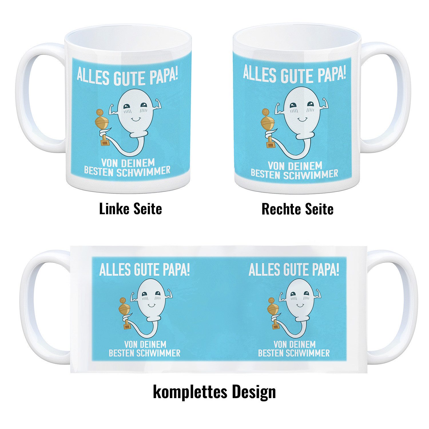 Papa, du bist der Beste! Diese lustige Tasse mit dem Spruch 'Alles Gute Papa wünscht Dir Dein bester Schwimmer' bringt garantiert ein Lächeln ins Gesicht deines Vaters. Perfekt für Vatertag, Geburtstag oder einfach mal so - um Danke zu sagen!