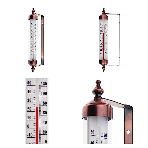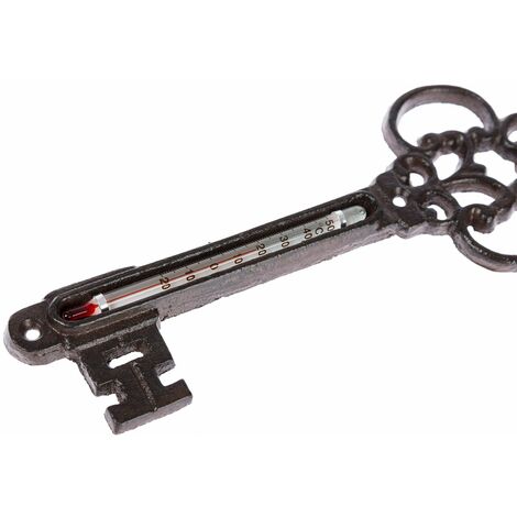 Dieses wunderschöne Thermometer im nostalgischen Schlüssel-Design ist ein echter Hingucker für Garten oder Hausfassade! Aus robustem Gusseisen handgegossen und in antik-braun lackiert, ist es absolut wetterfest. Die Temperaturanzeige von -20°C bis +50°C lässt sich genau ablesen - perfekt um jederzeit zu wissen, wie warm oder kalt es draußen ist. Mit 21,5cm Höhe und 8,5cm Breite ist es gut sichtbar, aber nicht zu aufdringlich. Die vorhandenen Bohrlöcher machen das Aufhängen zum Kinderspiel. Ein tolles Geschenk für Gartenliebhaber und alle, die vintage-Stil mögen!