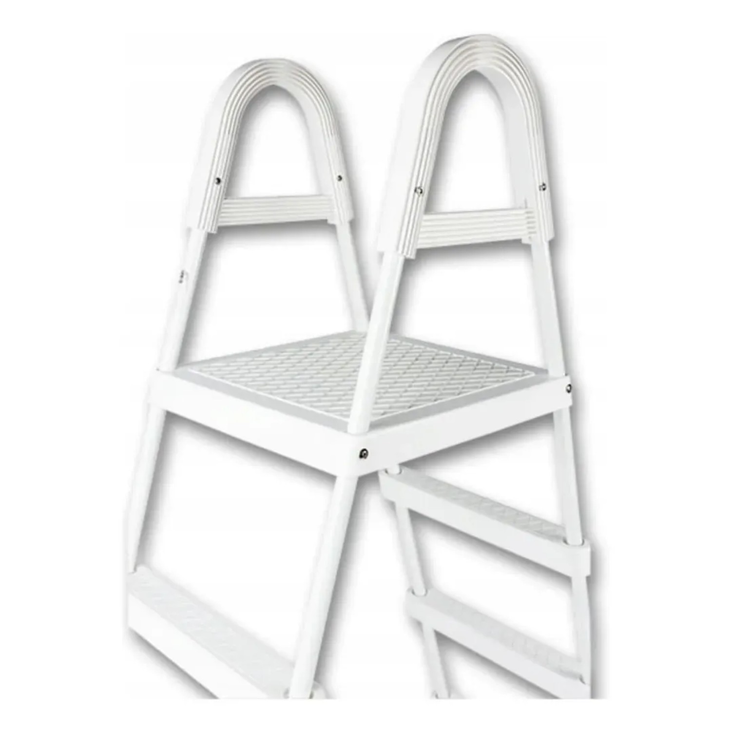 Mit einer Gesamthöhe von 167 cm und einer Leiterhöhe von 104 cm passt diese Leiter zu den meisten Pools und Stegen. Die vier rutschfesten Stufen mit 25 cm Abstand bieten sicheren Halt.