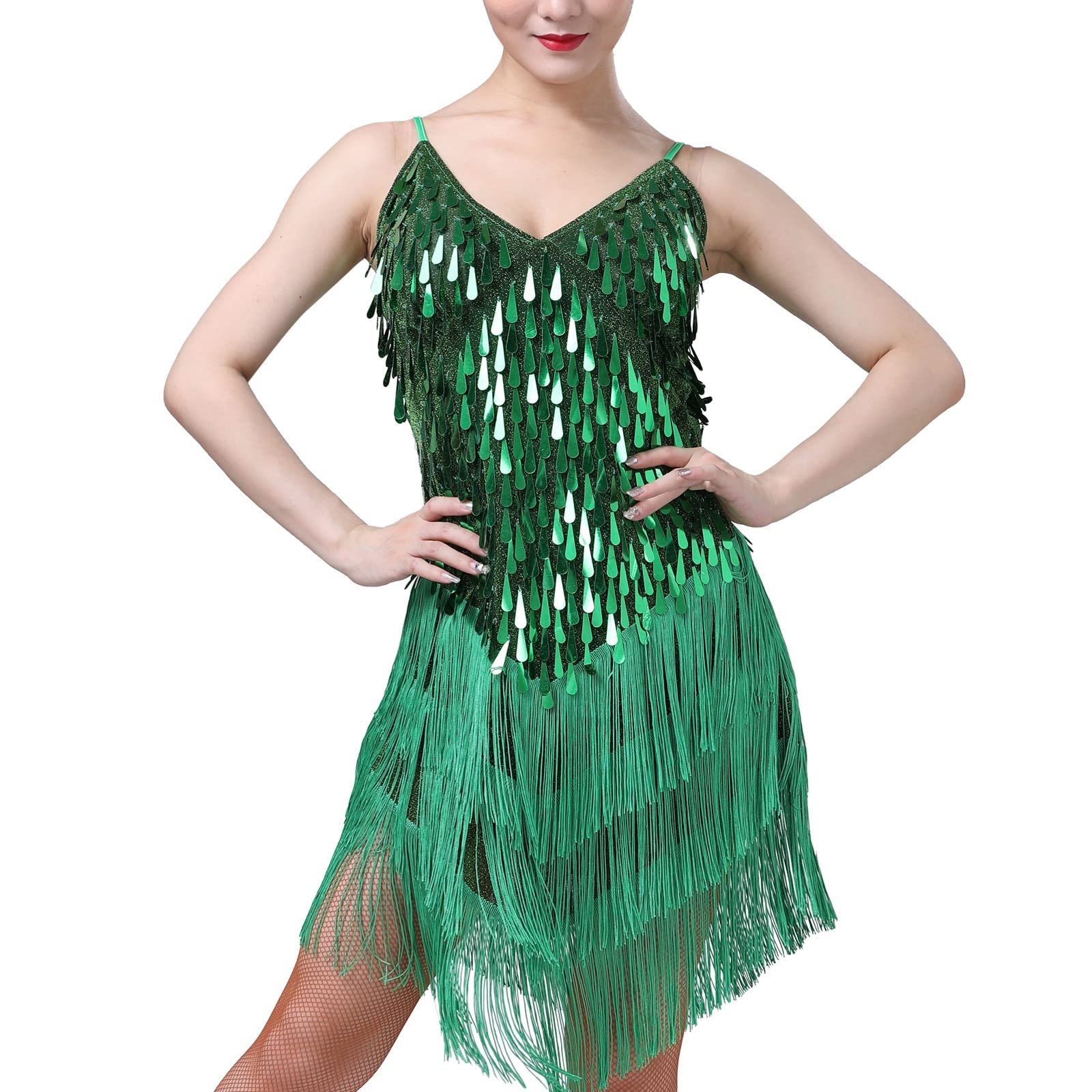 Wow, dieses Tanzkleid ist der absolute Hingucker! Übersät mit funkelnden Pailletten und Strasssteinen - unter den Lichtern der Bühne einfach umwerfend. Mit süßem Fransenrock, der bei jeder Bewegung elegant schwingt. Ärmelloses Design mit Stehkragen und offenem Rücken - super sexy! Aus 50% Polyester, 30% Pailletten, 10% Mesh und 10% Strass. In Größen von S bis XXL erhältlich. Perfekt für Latein, Salsa, Tango, Rumba oder Bühnenauftritte. Damit wirst du garantiert zum Star jeder Tanzveranstaltung! Einfach anziehen, strahlen und tanzen - mehr braucht's nicht für den perfekten Auftritt!