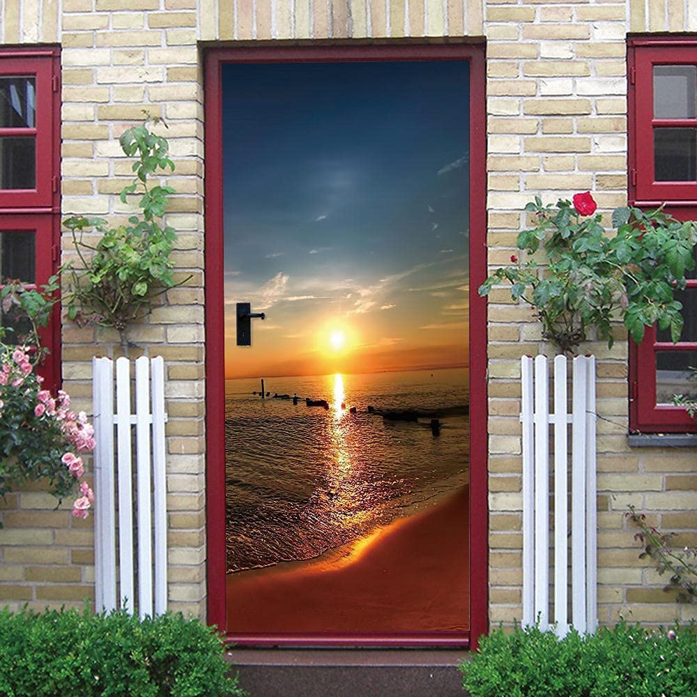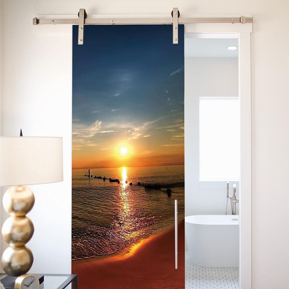 3D Türaufkleber Sonnenuntergang Am Strand - 95x215 Cm Selbstklebend & Abziehbar - PVC Fototapete Für Wohnzimmer, Bad & Kinderzimmer