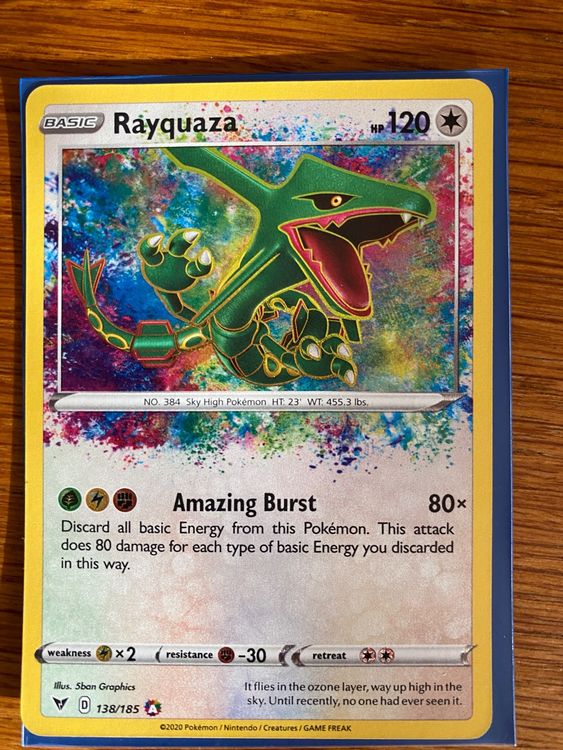 • Rayquaza 138/185 Amazing Rare Pokemon Karte - Vivid Voltage + Toploader