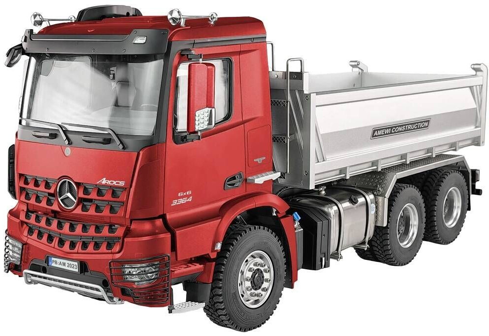 Alter, dieser Mercedes-Benz Arocs ist der Hammer! Offiziell lizenziert, im Maßstab 1:18 und in metallic-schwarz lackiert - das sieht einfach nur premium aus. Der Kranaufbau ist voll funktionsfähig und proportional steuerbar, das heißt du kannst ihn super präzise bedienen. Mit dem elektrischen Holzgreifer und Schrottgreifer packst du alles, was dir in die Quere kommt. Und die Mulde? Die kippst du per Fernsteuerung, oder du öffnest die Bordwände von Hand - total vielseitig! Mit 4WD-Antrieb und 4-Rad-Lenkung meisterst du jedes Gelände, und die weichen Gummireifen geben dir den nötigen Grip. Soundmodul mit Rückfahrwarnton und LED-Beleuchtung runden das realistische Feeling ab. Das Set ist ready-to-run, also Akku laden und losdüsen! Bis zu 20 Minuten Spielzeit pro Ladung - da hast du richtig Spaß. Achtung: Nicht für Kinder unter 8 Jahren, aber für alle großen Kids ein absolutes Traumauto!