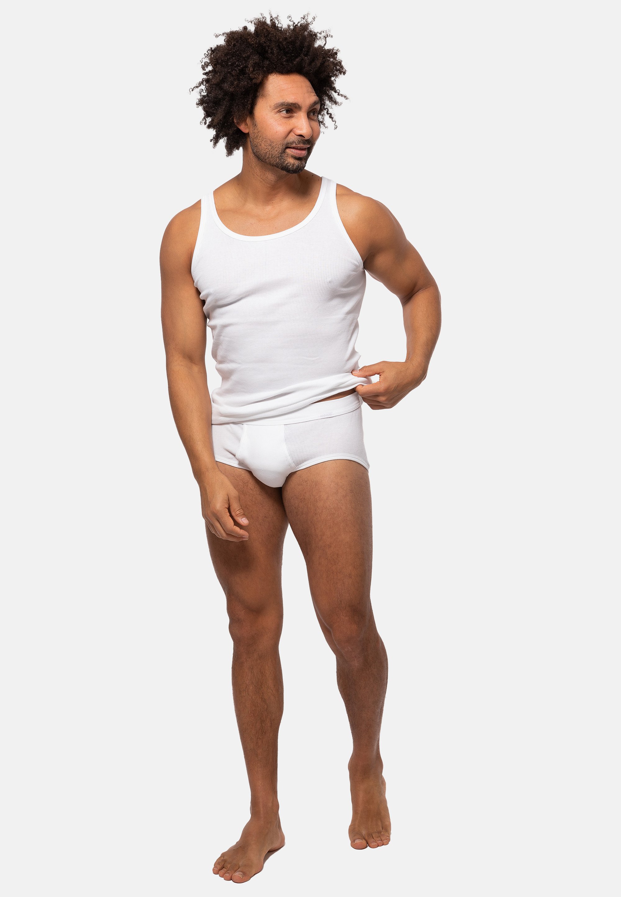 Doppelripp bedeutet: Das Material ist etwas dicker und stabiler als normale Baumwolle. Hält also länger, verzieht sich nicht und sitzt einfach perfekt. Ideal als Unterwäsche unter Hemden oder einfach so zum Relaxen zu Hause.