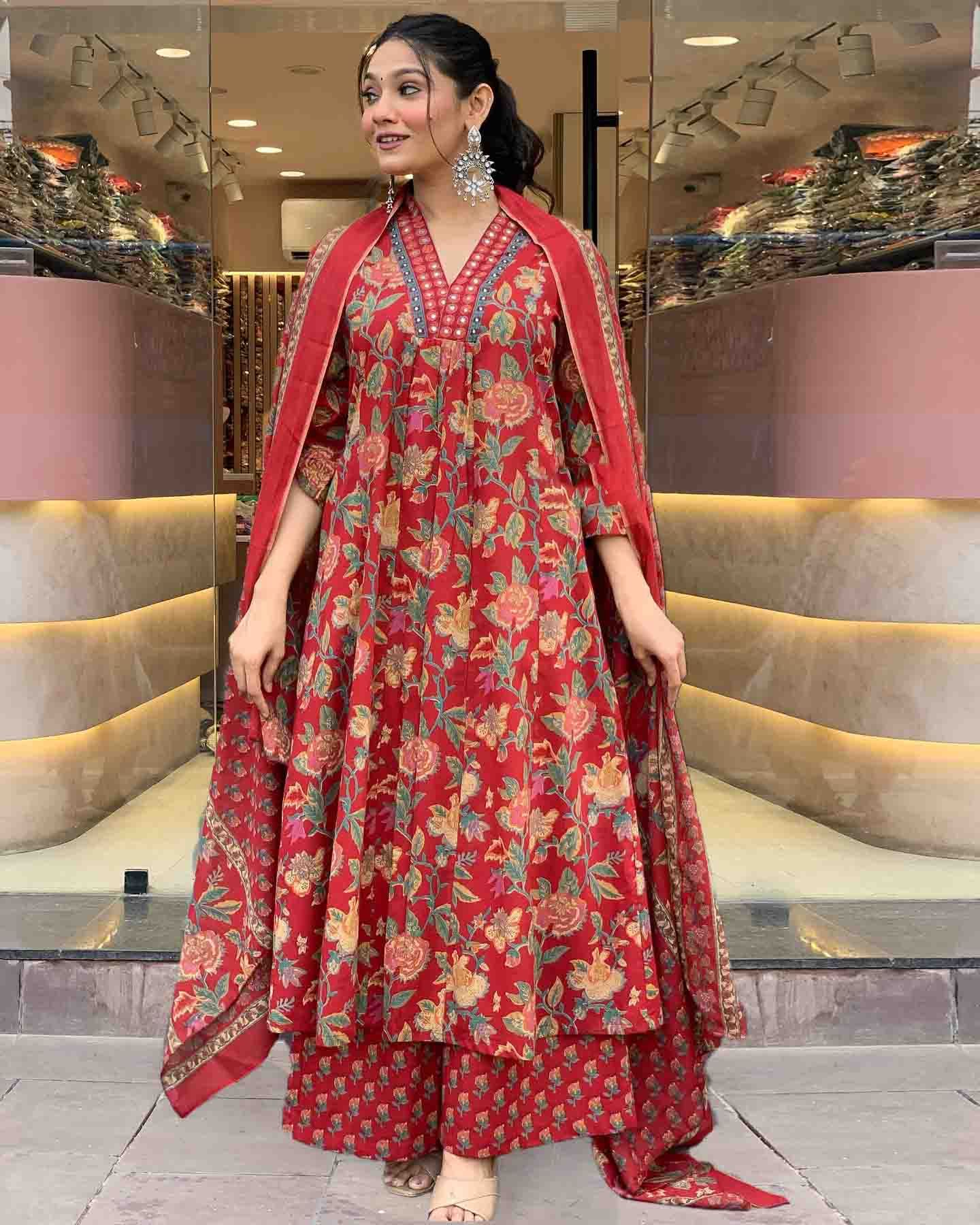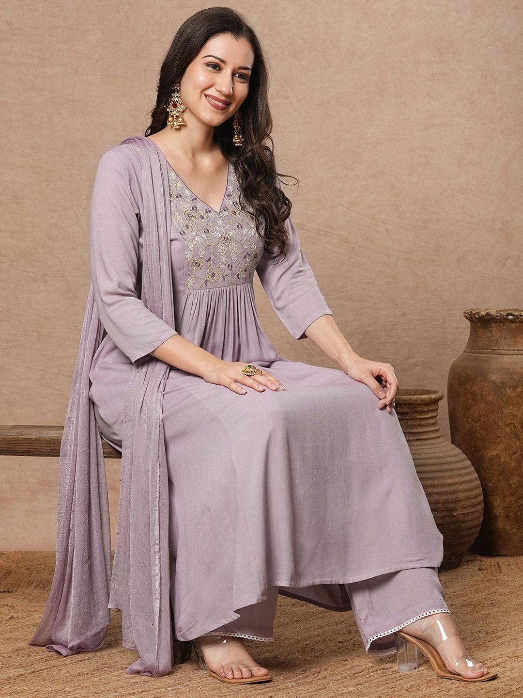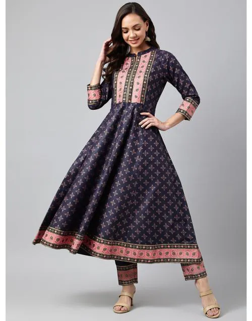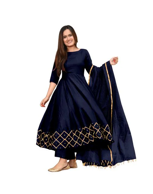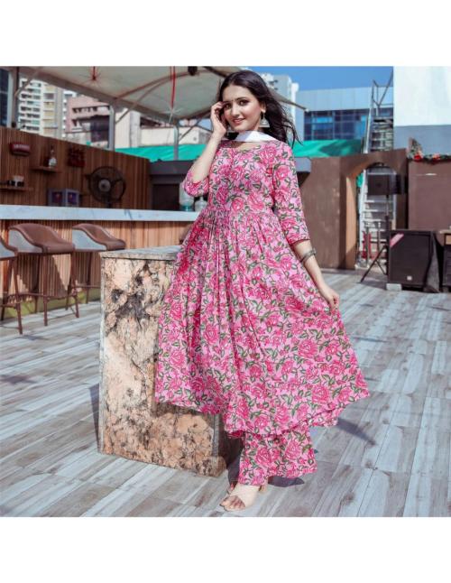 Einfach wunderschön! Dieses Anarkali Kurta Set von GoSriKi in Violett mit aufwendiger Stickerei ist ein echter Hingucker. Aus weicher Baumwollmischung angenehm zu tragen, mit 3/4-Ärmeln und V-Ausschnitt. Die wadenlange Kurta kombiniert mit passender Hose und Dupatta - komplett outfit für traditionelle Anlässe. Perfekt für Feste, Hochzeiten, Partys oder als Alltags-Outfit. In Größen S-XXL erhältlich. Die lockere Passform gibt Bewegungsfreiheit und sitzt trotzdem elegant. Ein Must-have für jede ethnische Garderobe - stylisch, bequem und absolut traumhaft!