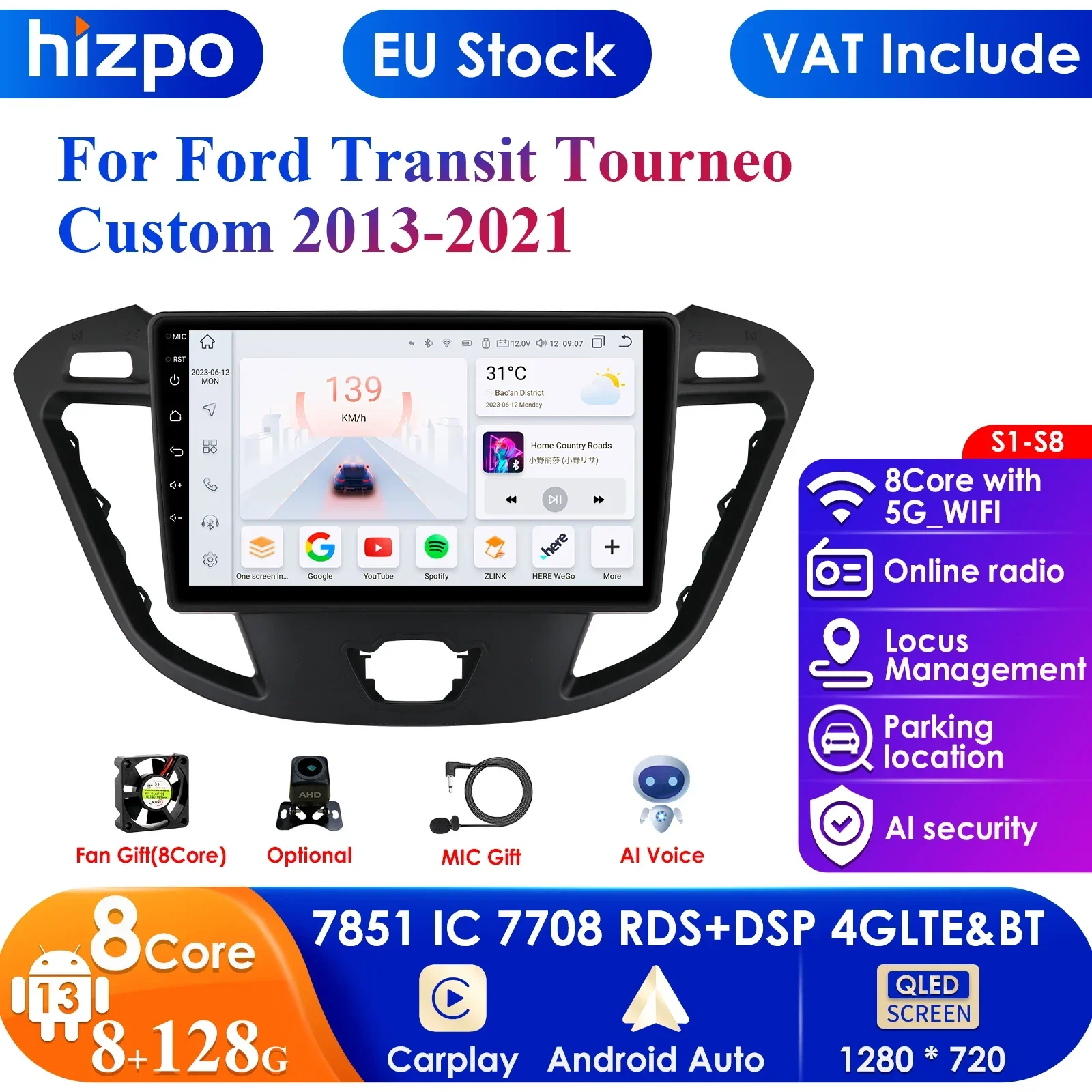 Alter, dieses Android Radio für deinen Ford Transit ist ja mal ein Upgrade! Für Transit Tourneo Custom von 2013-2021! 9 Zoll IPS Touchscreen - mega groß und klar! Mit 4GB RAM und 64GB ROM - läuft butterweich und du kannst alle Apps installieren die du willst! Wireless Carplay und Android Auto - einfach verbinden und los! Kein Kabelsalat mehr! GPS online/offline, WiFi Hotspot, Bluetooth 5.0 - alles dabei! 32-Band Equalizer für perfekten Sound! Lenkradsteuerung kompatibel - alle Funktionen vom Steuer aus bedienbar! Unterstützt Rückfahrkamera - siehst du sofort was hinter dir ist! Split-Screen Funktion - zwei Apps gleichzeitig! Einbau ist einfach - passt perfekt in die Mittelkonsole! Aber vorher checken ob's zu deinem Modell passt! Mit 2 Jahren Support - da bist du safe!