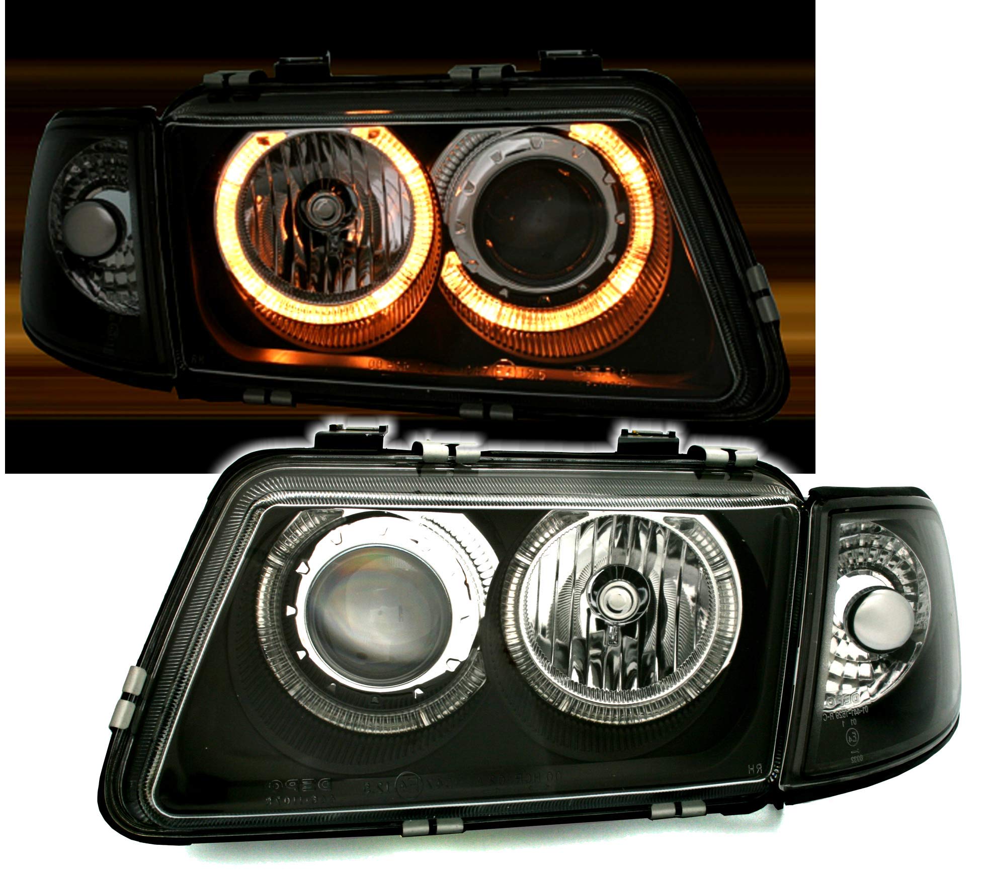 Boah, diese AD Tuning Angel Eyes Scheinwerfer machen deinen Opel Vectra C oder Signum richtig sexy! Im Klarglas-Design in Schwarz sehen sie ultra-modern aus. Mit den coolen LED-Tageslichtringen (Angel Eyes) fällst du garantiert auf. Passend für Vectra C ab 4/2002 bis 7/2005 und Signum ab 5/2003 bis 9/2005 - aber nur für Fahrzeuge OHNE Xenon! Vorbereitet für elektrische Leuchtweitenregulierung - deinen originalen Stellmotor kannst du weiter verwenden. Benötigt werden H7 Leuchtmittel (leider nicht im Lieferumfang). Und das Beste: Eintragungsfrei mit E-Prüfzeichen - also komplett straßenzugelassen! Einfach einbauen und dein Auto sieht aus wie frisch vom Tuner!