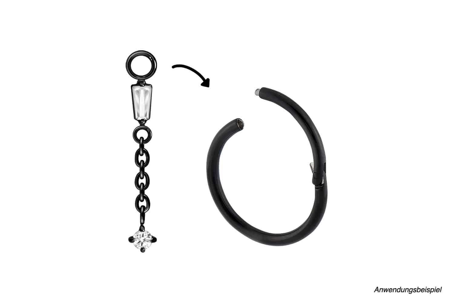 Verpasse deinen Piercings den letzten Schliff! Dieser glitzernde Kristall-Anhänger aus hautfreundlichem Chirurgenstahl 316L passt perfekt auf Clicker Ringe, Segmentringe und Kreolen bis 2mm Stabdicke. Mit 5x11mm ist er genau die richtige Größe - nicht zu aufdringlich, aber trotzdem ein echter Hingucker. Der klare Kristall fängt jedes Licht ein und sorgt für funkelnde Akzente. Einfach in deinen bestehenden Ring einklipsen und schon hast du ein neues Look! Perfekt für Helix, Ohrläppchen oder wherever du willst. Made in Germany Qualität - für strahlende Piercing-Momente!