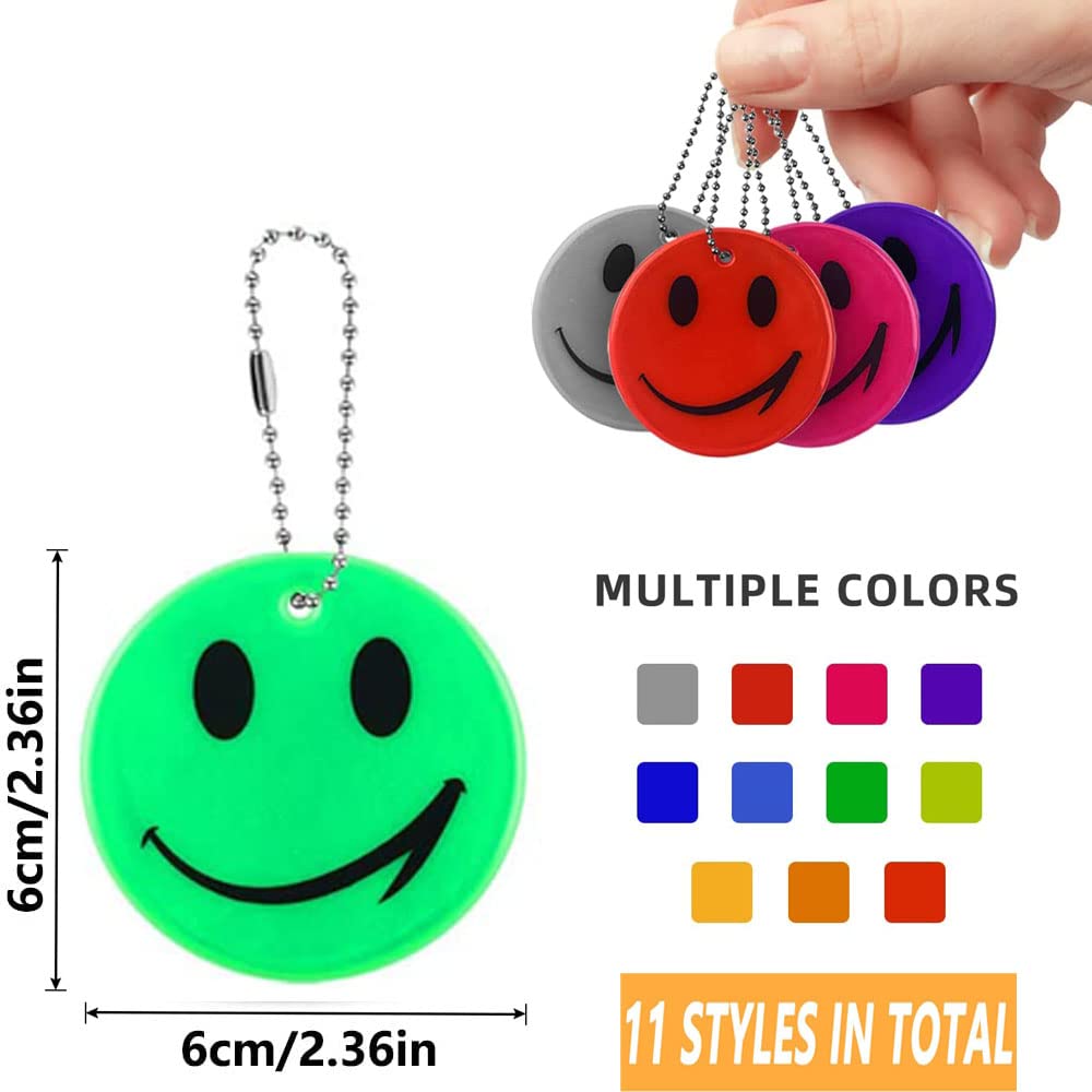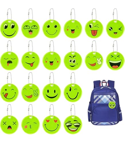Sicherheit kann auch süß sein! Dieses Set mit 25 Reflektor-Anhängern in coolen Emoticon-Designs macht dein Kind im Dunkeln richtig sichtbar. Jeder Anhänger hat ca. 5cm Durchmesser und ist mit nem praktischen Band zum Anhängen ausgestattet. Super für Schulranzen, Rucksäcke, Fahrräder, Kinderwagen oder sogar Hundehalsbänder! Die Reflektoren sind aus robustem PVC, wasserdicht und windfest - halten also einiges aus. Die 360°-Reflexionsfläche sorgt dafür, dass dein Kind auch aus 125m Entfernung gesehen wird. Perfekt für den Schulweg, Radfahren, Joggen oder einfach für abendliche Spaziergänge. Macht auch ein tolles Geschenk zu Geburtstag oder Weihnachten - kombiniert Spaß mit Sicherheit!