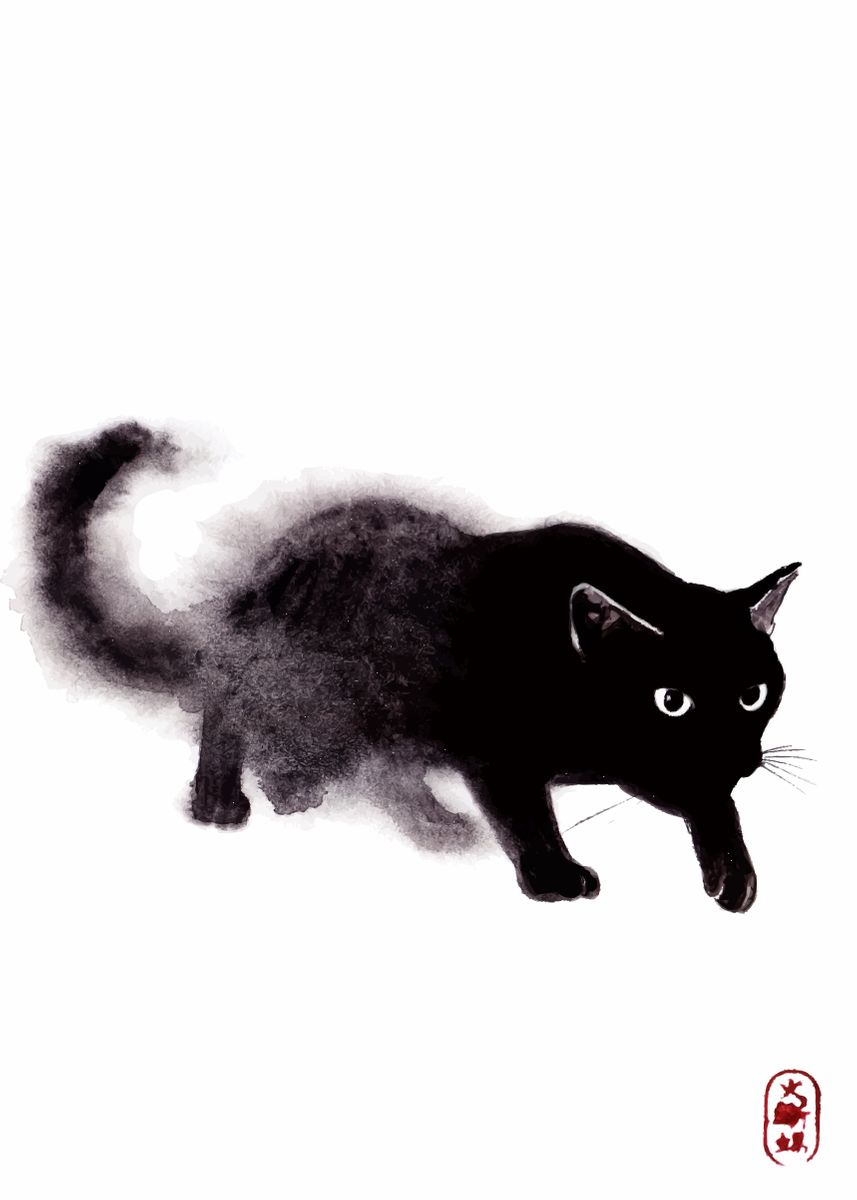 • Japanese Ink Anime Manga T-Shirt - Black Cat Design Für Japan Lover