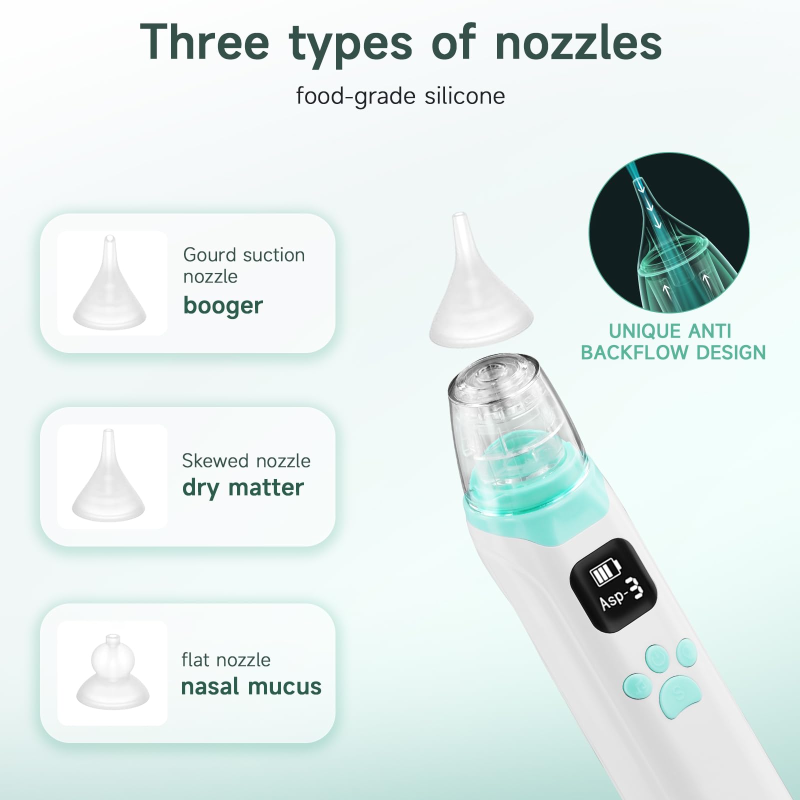 Hat dein Baby eine verstopfte Nase und du willst ihm helfen? Dieser elektrische Nasensauger von Anluomania macht die lästige Nasenreinigung viel einfacher! Mit 5 einstellbaren Saugstufen kannst du die Intensität genau an die Bedürfnisse deines Babys anpassen. Die maximale Saugleistung von 68 kPa entfernt Sekrete effektiv, damit dein Kleines wieder frei atmen kann. Im Lieferumfang sind 3 verschiedene Silikonspitzen enthalten - Kürbis-, Schräg- und Trichterdüse - alle aus hautfreundlichem, lebensmittelechtem Silikon. Das besondere Feature: Der Sauger spielt fröhliche Lieder und hat buntes Licht, das dein Baby ablenkt und beruhigt. Mit weniger als 65 dB ist er super leise und stört nicht beim Schlafen. Die IP65 Wasserdichtigkeit macht die Reinigung einfach - alle Teile sind abnehmbar und spülmaschinenfest. Der 600 mAh Akku lädt in 100 Minuten voll und hält dann bis zu 100 Minuten. Perfekt für unterwegs - kompakt und leicht. Mit LED-Anzeige behältst du immer den Überblick. So wird die Nasenpflege für dich und dein Baby stressfrei und effektiv!