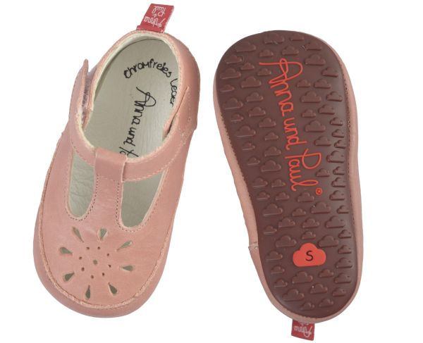 Diese süßen Krabbelschuhe von Anna und Paul sind einfach perfekt für kleine Entdecker! Hergestellt aus 100% chromfrei vegetabil gegerbtem Leder - komplett ohne chemische Behandlung und absolut schadstofffrei. Das weiche, atmungsaktive Naturleder passt sich perfekt den empfindlichen Kinderfüßen an und gibt maximale Bewegungsfreiheit. Mit dem elastischen Gummiband am Einstieg gleiten die Füße ganz leicht in die Schuhe. Die Sohle ist ebenfalls aus Leder und unterstützt den natürlichen Abrollvorgang - super wichtig für die Entwicklung der Fuß- und Beinmuskulatur! Erhältlich in drei Größen: S (12cm für 18/19), M (13,5cm für 20/21) und L (15cm für 22). Die Pflege ist denkbar einfach: Einfach mit feuchtem Tuch reinigen und bei Bedarf mit Lederpflege auf Bienenwachsbasis behandeln. Hergestellt in Portugal unter fairen Arbeitsbedingungen - da kannst du mit gutem Gewissen kaufen! Perfekt für drinnen, wo kleine Füße ihre ersten Schritte machen. Ob für Jungen oder Mädchen - diese Schuhe sind nicht nur gesund, sondern auch total stylish!
