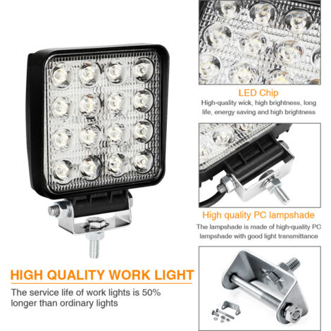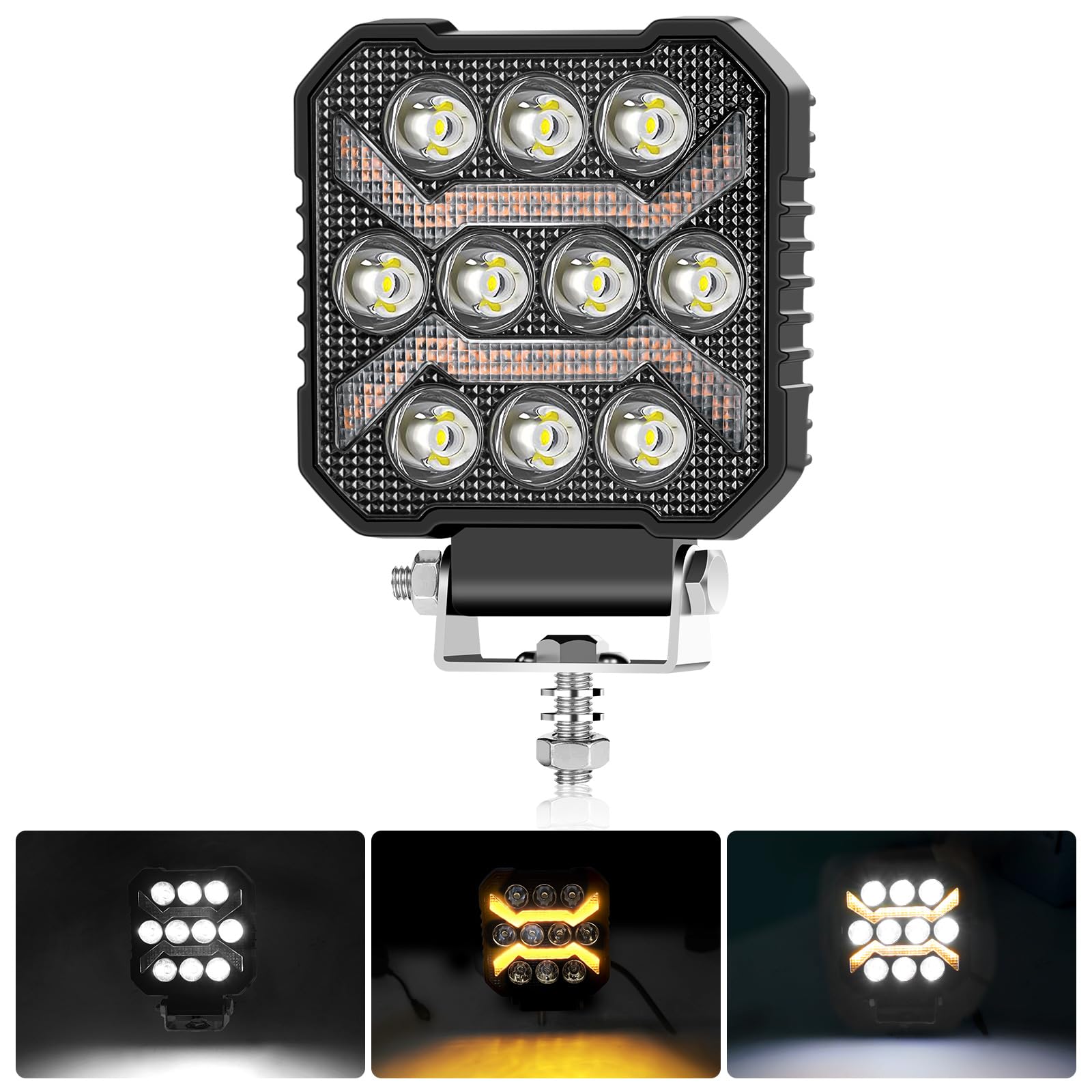 Mach die Nacht zum Tag mit diesen ultrahellen LED Arbeitsscheinwerfern! 28000 Lumen Gesamtleistung - einfach unglaublich hell! Besonderheit: Duale Farbtemperatur - wähle zwischen warmweißem Gelblicht (3000K) für Nebel und Regen oder kaltweißem Tageslicht (6500K) für klare Nächte. Voll wasserdicht nach IP68, halten auch bei sintflutartigem Regen stand. Kompatibel mit 12V und 24V Systemen - passt zu SUV, UTV, ATV, Traktor, Bagger und mehr. Das Gehäuse aus Druckguss-Aluminium mit Kühlrippen sorgt für optimale Wärmeableitung. Mit 8x5,5x7,5cm kompakt aber extrem stabil. Die bruchsichere PC-Linse und Edelstahl-Halterung machen die Lampen unverwüstlich. Einfache Installation, inklusive hochwertigen Kupferkabeln. Perfekt für Offroad, Landwirtschaft, Baustelle oder als Zusatzbeleuchtung am Auto.