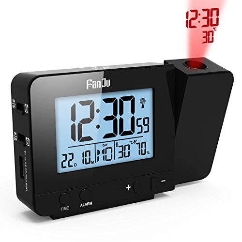 Wach werden war noch nie so angenehm! Dieser coole Projektionswecker zeigt dir die Zeit direkt an der Decke oder Wand - perfekt für gemütliches Liegenbleiben. Mit 180° verstellbarem Projektor, der sich deinen Bedürfnissen anpasst. Zeigt nicht nur die Zeit, sondern auch Temperatur und Luftfeuchtigkeit im Raum an. Das elegante Spiegel-Design sieht modern aus und ist super praktisch. Mit FM-Radio - speichert bis zu 10 Sender für deine Lieblingsmusik. Zwei separate Wecker für unterschiedliche Zeiten - ideal für Paare. Die Snooze-Funktion gibt dir extra Schlummerzeit. 6 Helligkeitsstufen und automatisches Dimmen schonen die Augen nachts. Der USB-Anschluss lädt dein Handy direkt mit. Perfekt für Schlafzimmer, Büro oder Hotel. Mit Schlaf-Timer von 5-90 Minuten für entspanntes Einschlafen. Ein echtes Multitalent, das deinen Alltag erleichtert! Aus hochwertigem ABS-Material - langlebig und stabil. Starte entspannt in den Tag!