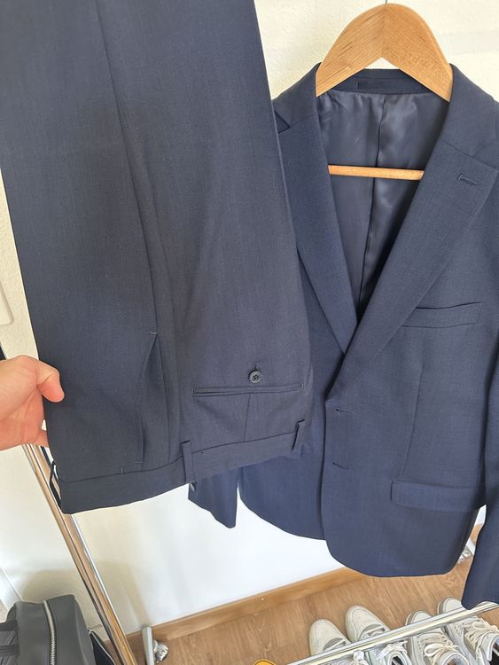 Suchst du einen modernen Anzug, der perfekt sitzt? Unser Slim Fit Anzug in klassischem Schwarz ist genau das Richtige für den Business-Alltag. Aus praktischem Business Traveller Stoff gefertigt, der kaum knittert und sich ideal für Reisen eignet. Das schmale Revers mit Schneiderkante verleiht dir eine elegante Note. Die Flat Front Hose ohne Bundfalte sorgt für einen cleanen Look. Und das Beste: Du kannst Sakko und Hose auch in unterschiedlichen Größen kombinieren! Einfach per Mail Bescheid geben, wenn du von der Baukasten-Option Gebrauch machen möchtest. Perfekt für den Office-Alltag, wichtige Termine oder besondere Anlässe, bei denen du gut aussehen willst, ohne auf Komfort verzichten zu müssen. Der Anzug ist in deutschen Konfektionsgrößen erhältlich und bietet durch die slim fit Passform eine zeitgemäße Silhouette.