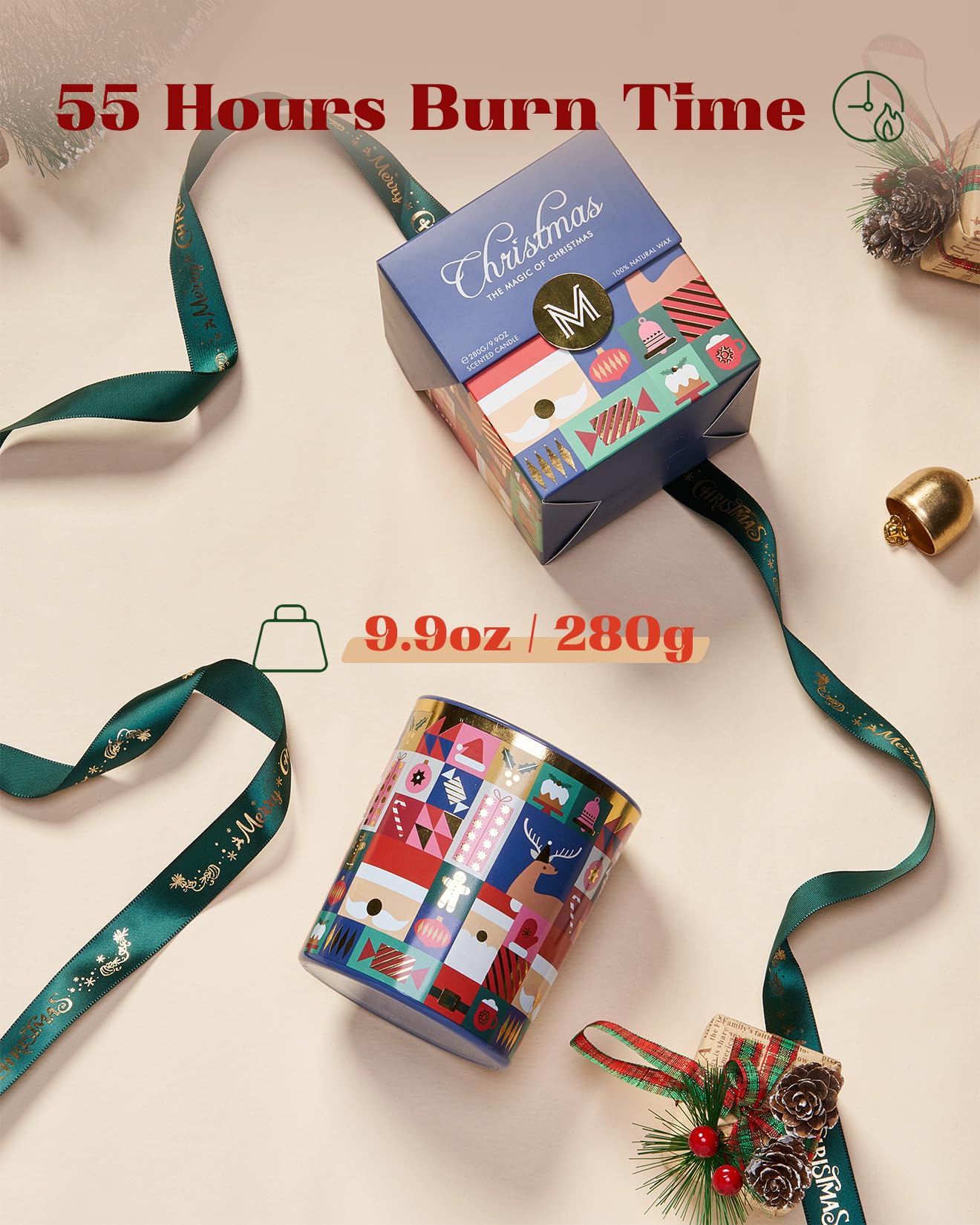 • M&SENSE Weihnachts Duftkerze Apfel & Vanille - 55 Std. Brenndauer Natürliches Sojawachs