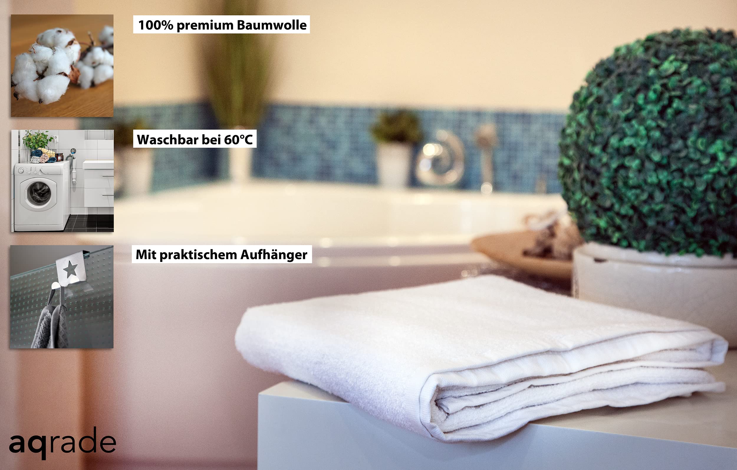 • Aqrade Saunatuch XXL 180x90cm - 100% Baumwolle, 480g/m², Mit Aufhänger, Weiß