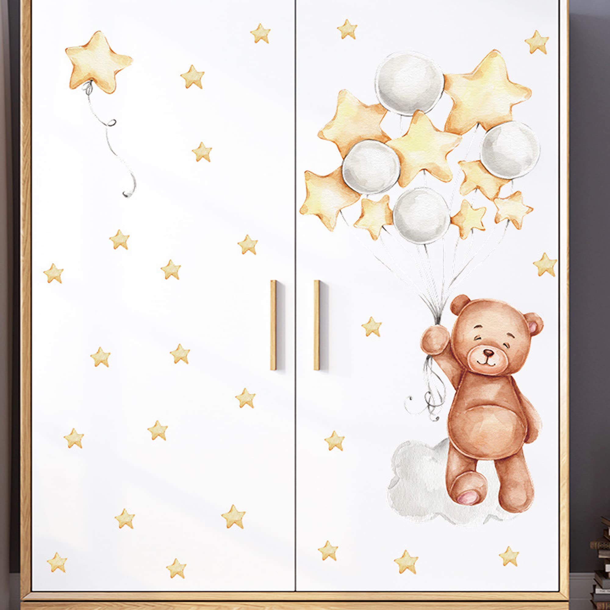 Oh wie süß! Dieses Wandtattoo mit dem niedlichen Bären und Hasen auf Wolken bringt sofort gemütliche Stimmung ins Kinderzimmer. In sanften Pastellfarben und mit Sternen, Mond und Wolken ist es perfekt für Jungen UND Mädchen. Einfach abziehen, an die Wand kleben und glattstreichen - fertig ist die traumhafte Wanddekoration! Aus hochwertigem PVC, wasserdicht und rückstandslos entfernbar. Maße: 60x70cm, also groß genug für eine Wand als Eyecatcher. Super fürs Babyzimmer, Kinderzimmer oder Spielzimmer. Macht jeden Raum sofort wärmer und einladender. Perfekt als Geschenk zur Geburt, Taufe oder zum Geburtstag. Kein Kleben, kein Bohren - einfach mal schnell das Zimmer umdekorieren! Dein Kind wird die niedlichen Tiere lieben und sich jeden Abend von ihnen in den Schlaf begleiten lassen.